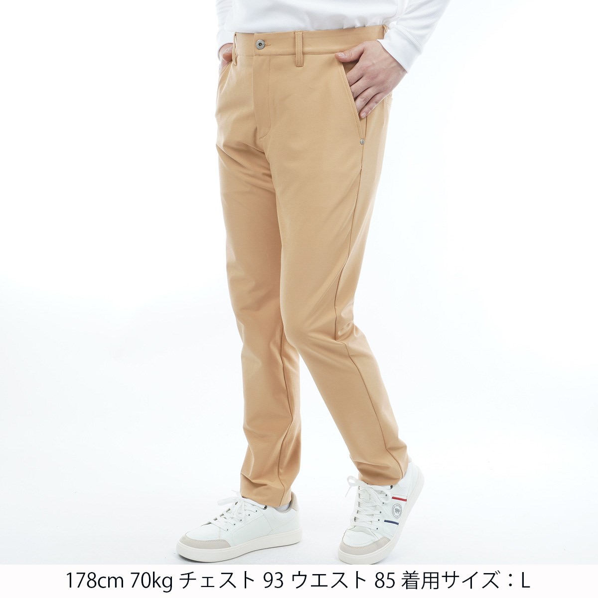 撥水性と高いストレッチ性を兼ね備えた4WAYツイル素材を使用したテーパードパンツ。