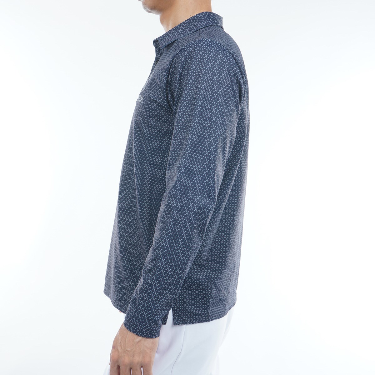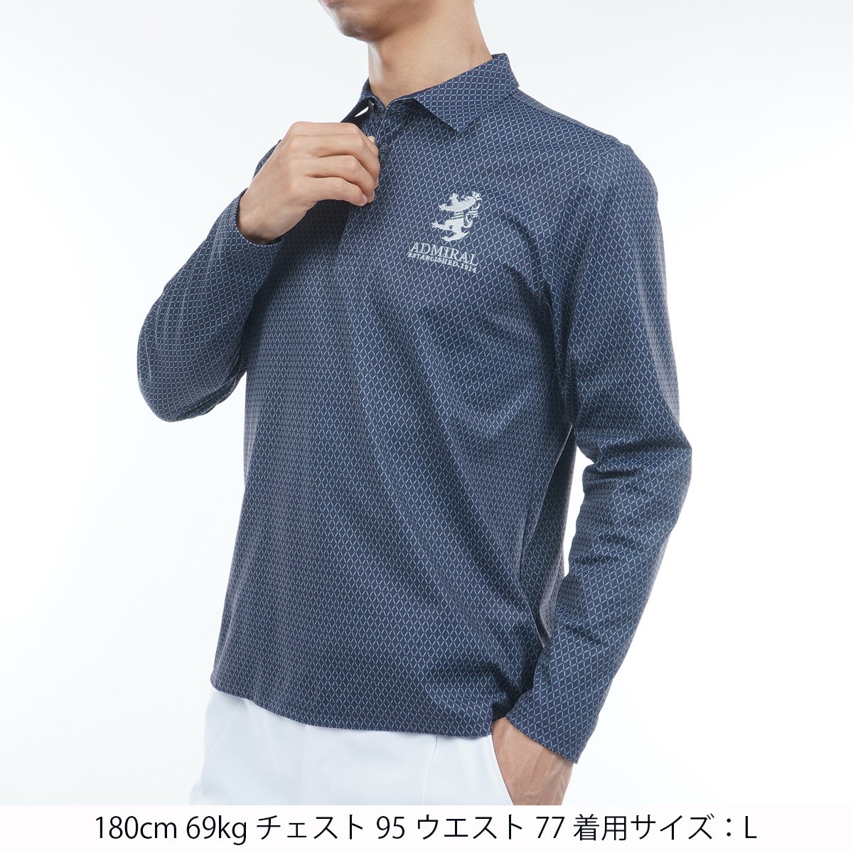 アドミラル Admiral ストレッチ 小紋柄 裏起毛長袖ポロシャツ M ネイビー