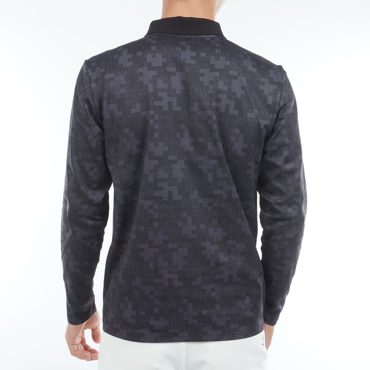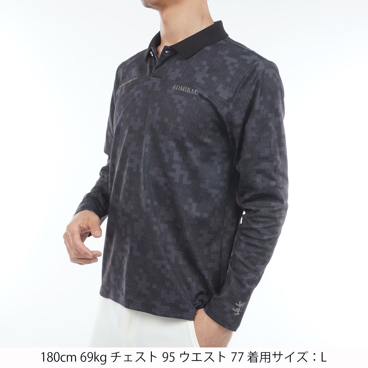 アドミラル Admiral ストレッチ モザイクカモフラージュ 裏起毛 長袖ポロシャツ LL ブラック