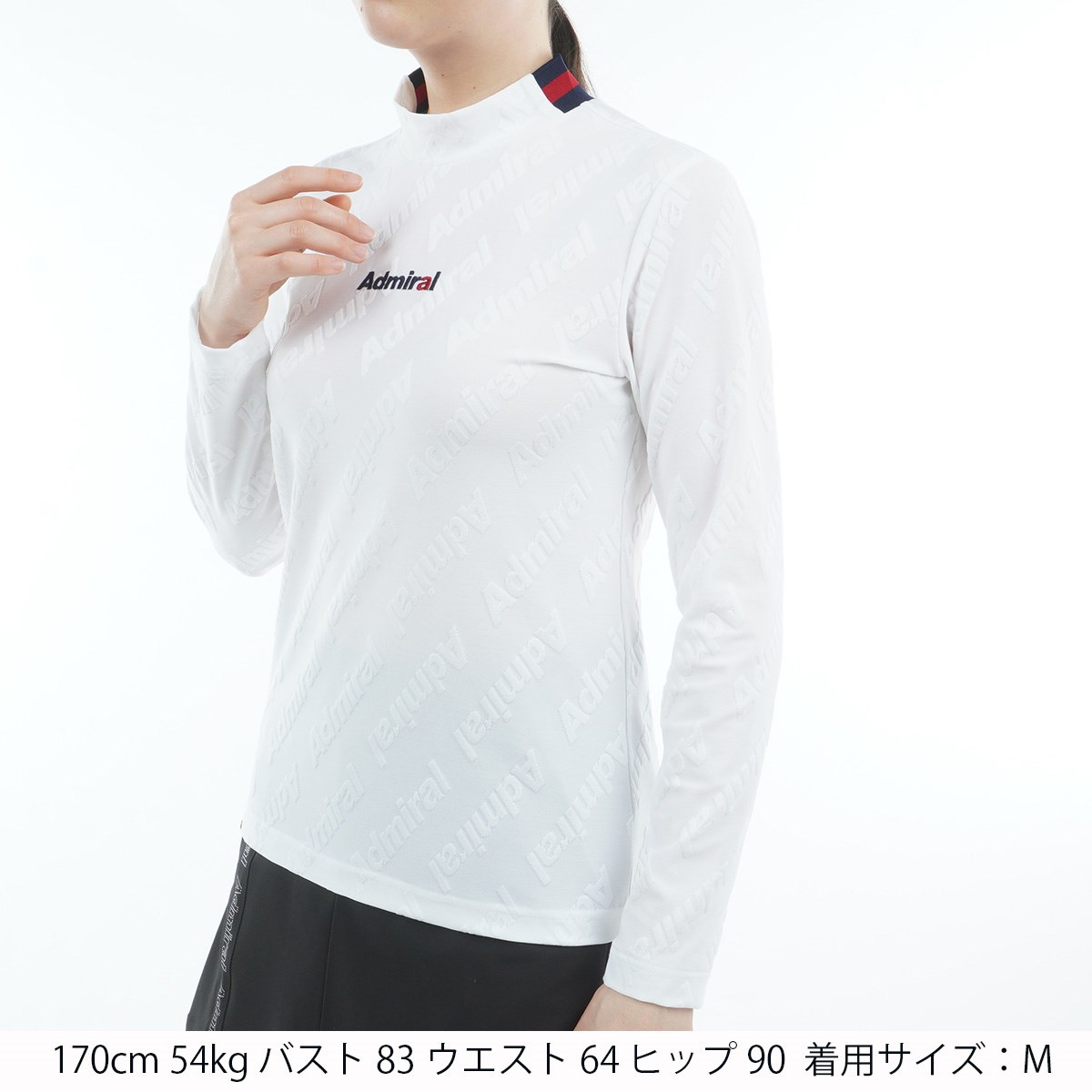 アドミラル Admiral ロゴストレッチ ジャカードモックネック長袖シャツ M ホワイト レディス