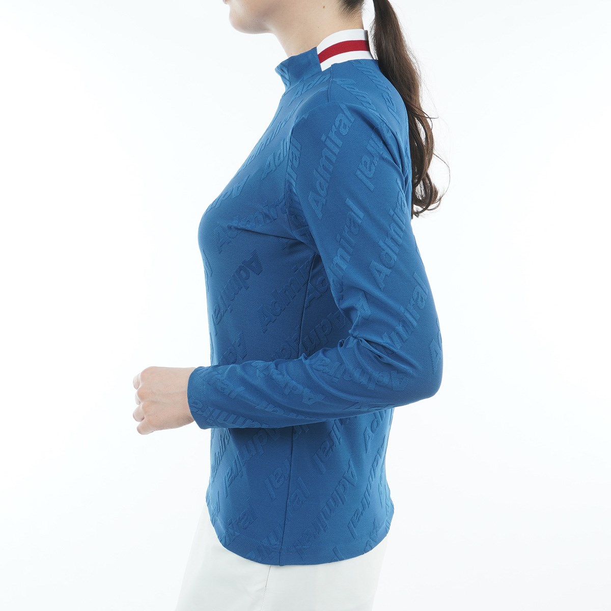 アドミラル Admiral ロゴストレッチ ジャカードモックネック長袖シャツ S ディープブルー レディス