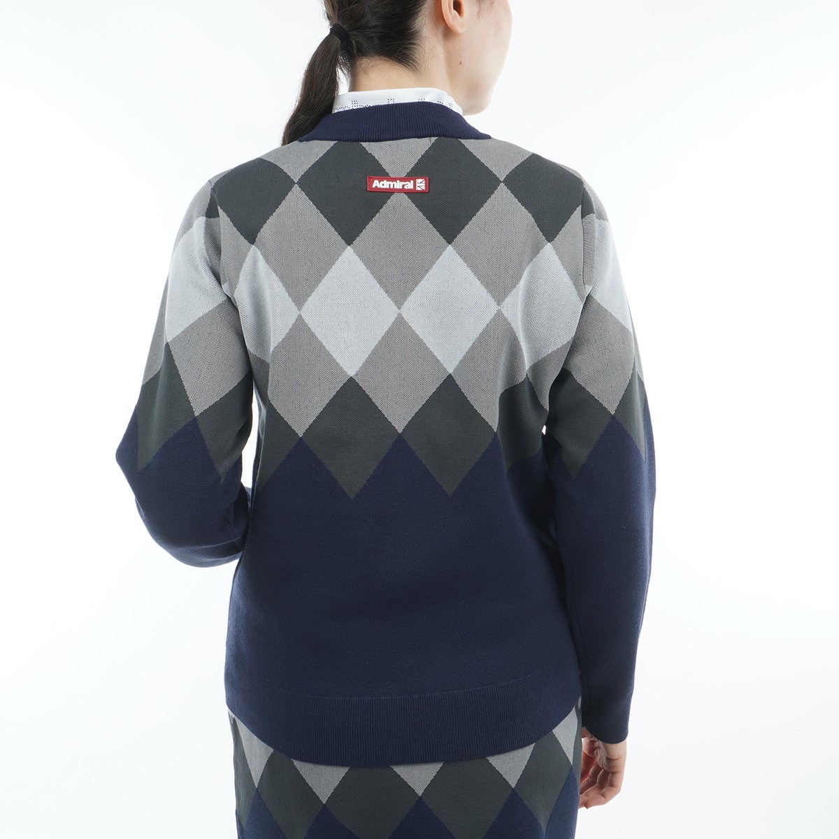 アドミラル Admiral アーガイル ボトルネックセーター S ネイビー レディス