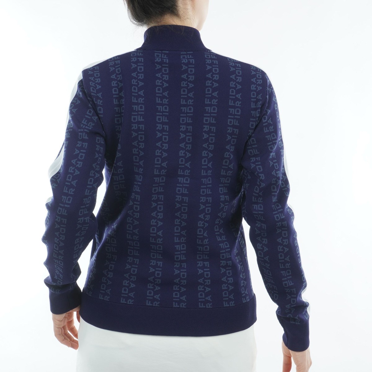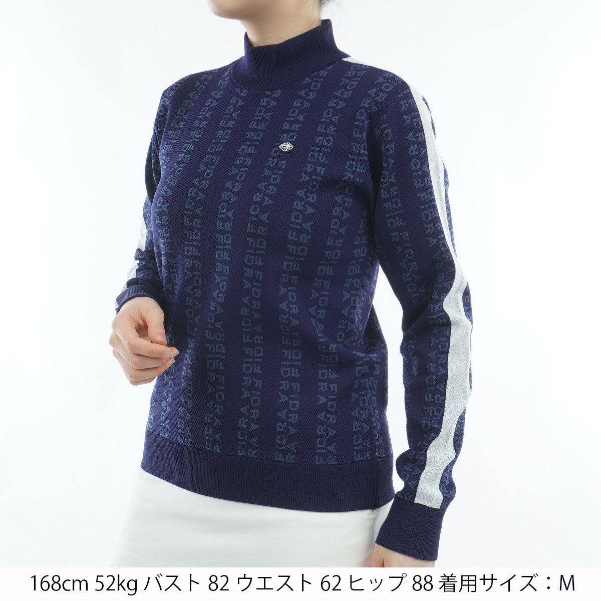 フィドラ FIDRA ストレッチ 総柄モックネックセーター M ネイビー レディス