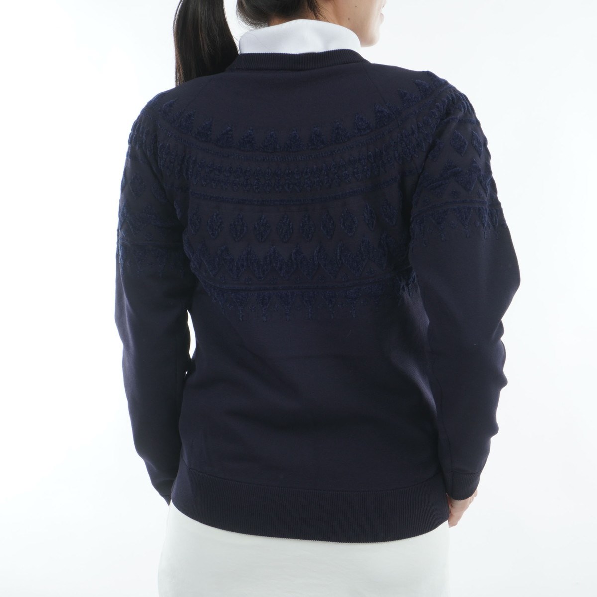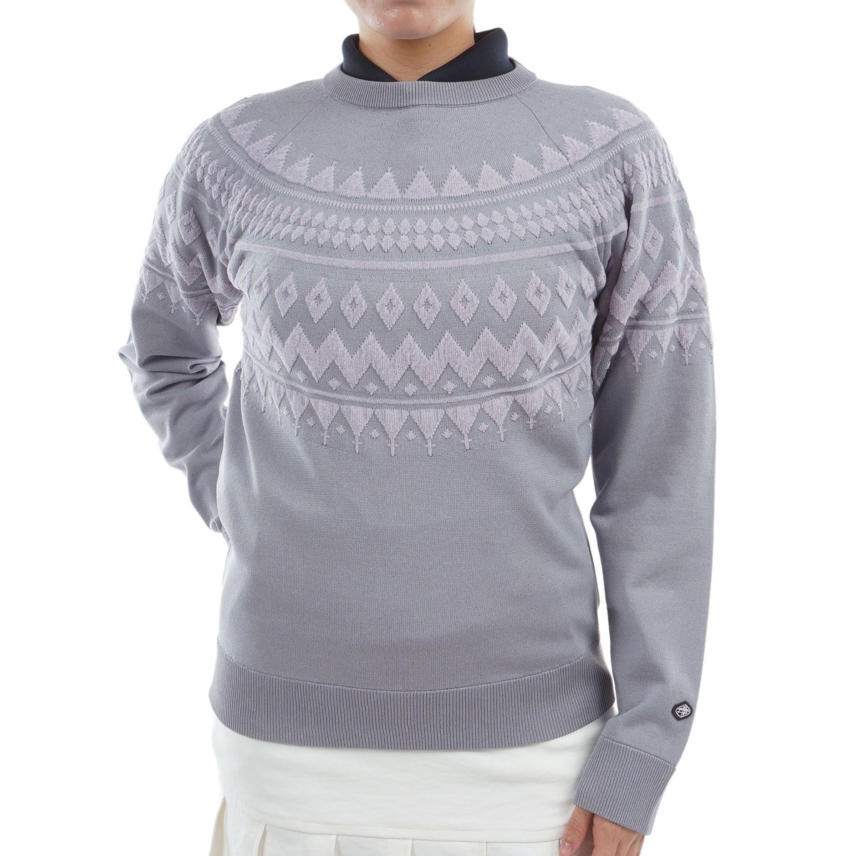 クルーネックでチルデン柄をジャカードで再現。