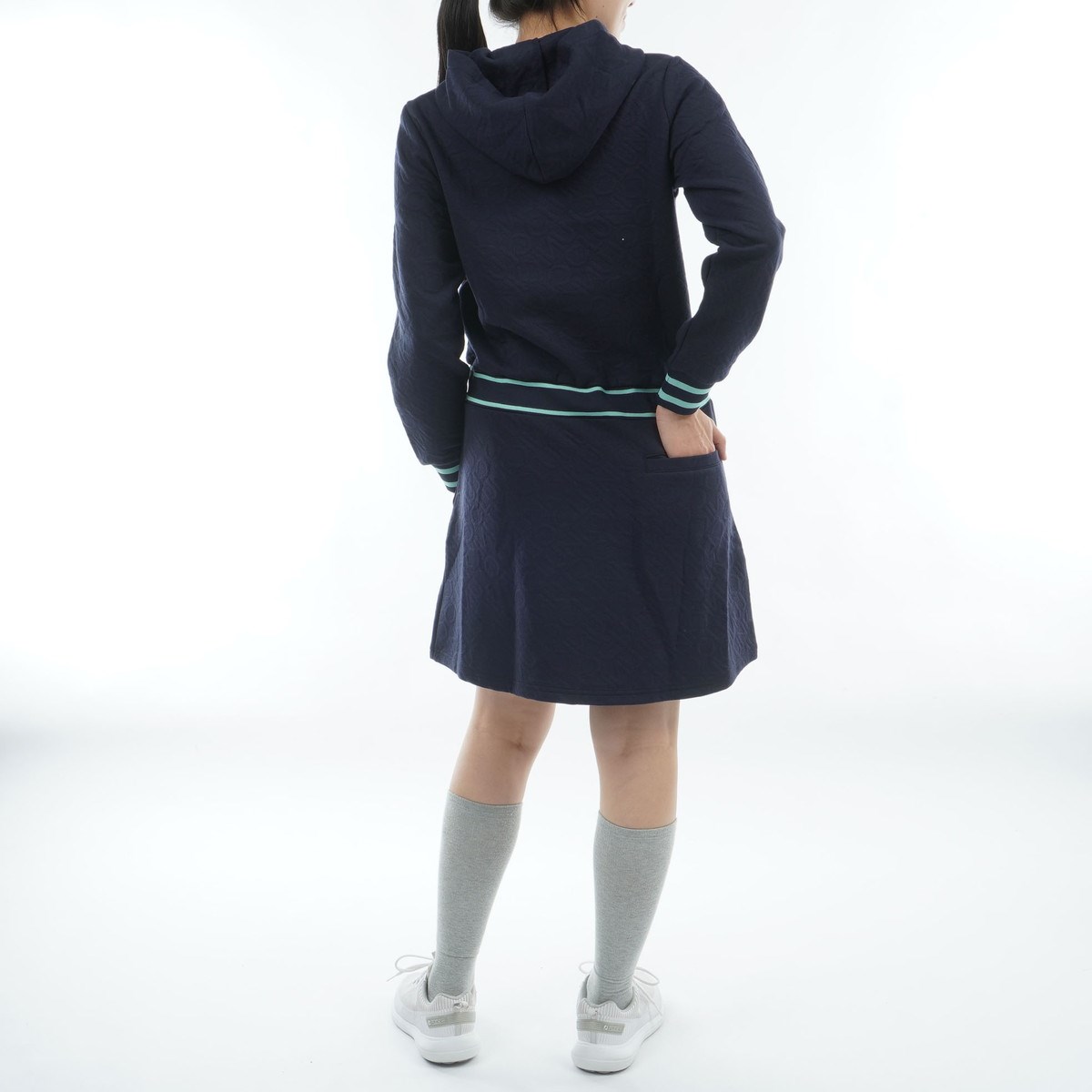 クランク Clunk ストレッチ ロゴキルトジャカードワンピース M ネイビー レディス