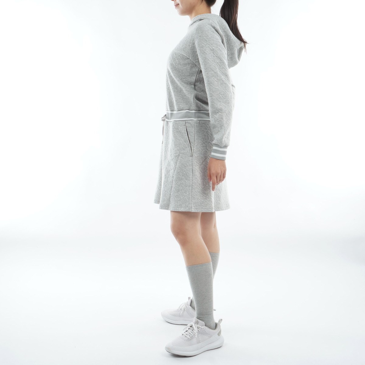クランク Clunk ストレッチ ロゴキルトジャカードワンピース M グレー レディス