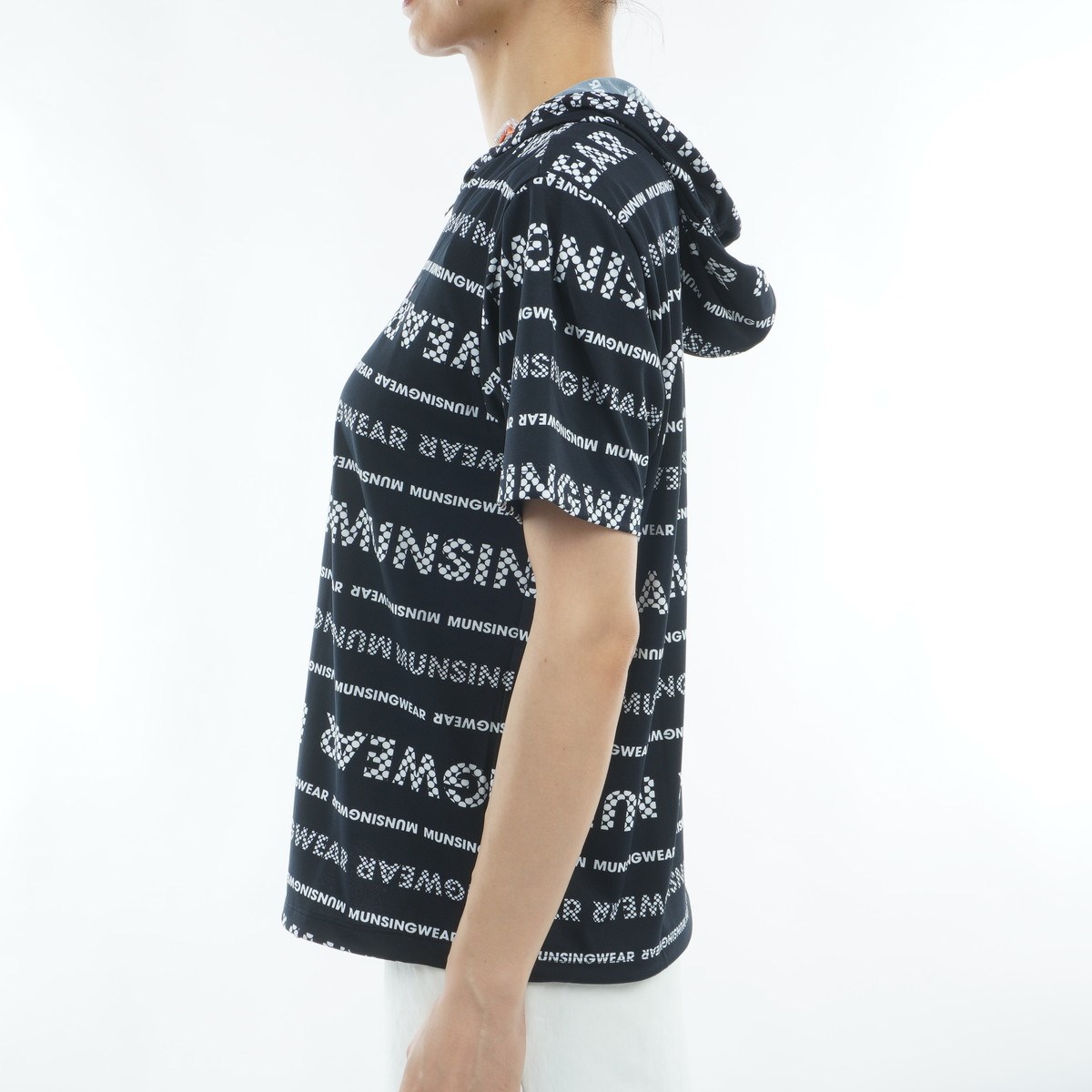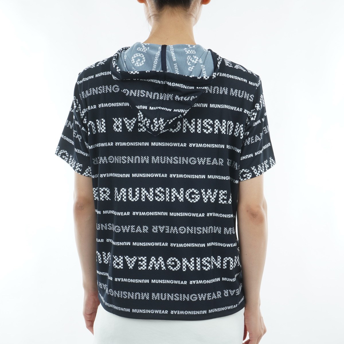 マンシングウェア Munsingwear Sunscreen NIR ストレッチ ロゴストライプフーディー半袖シャツ L ネイビー 00 レディス