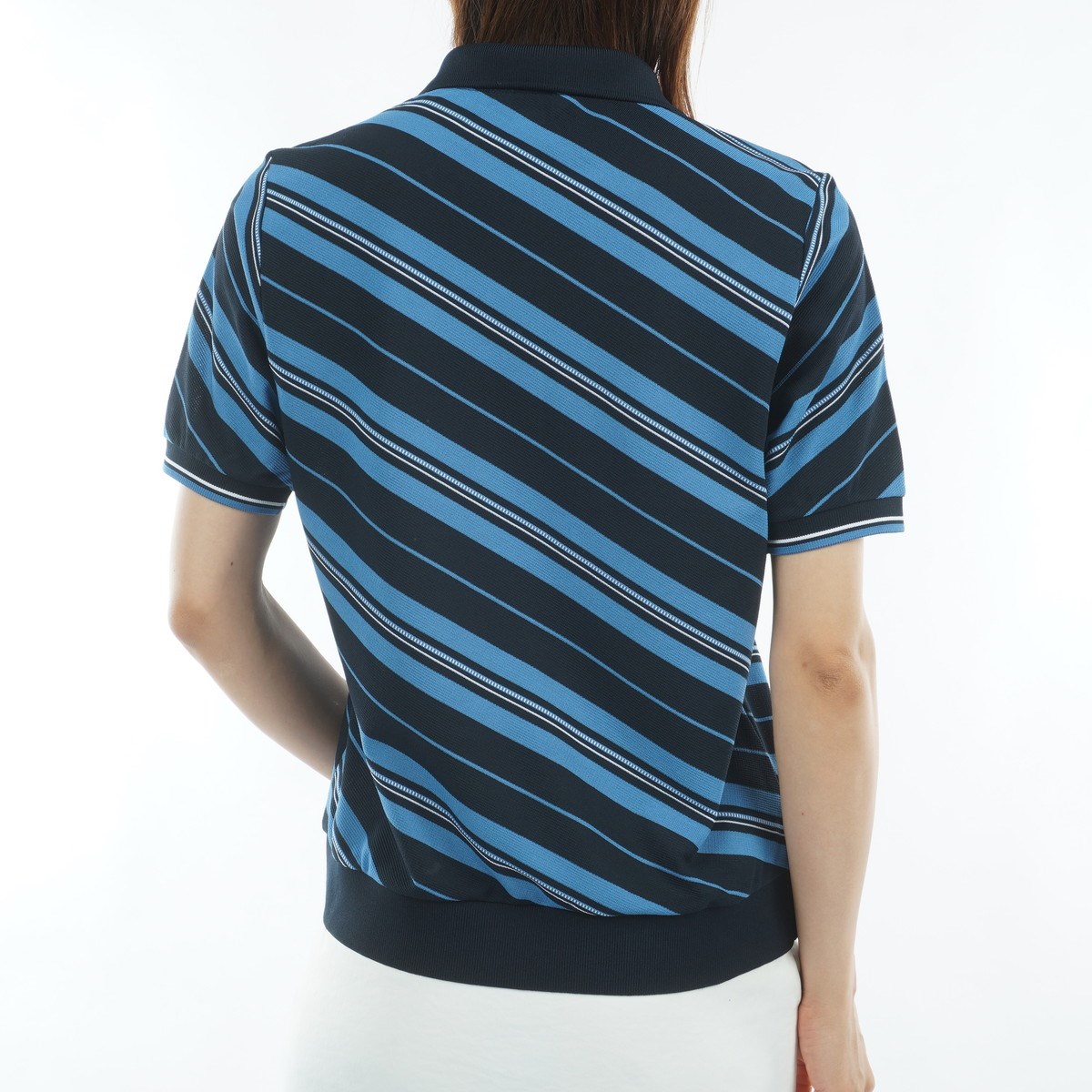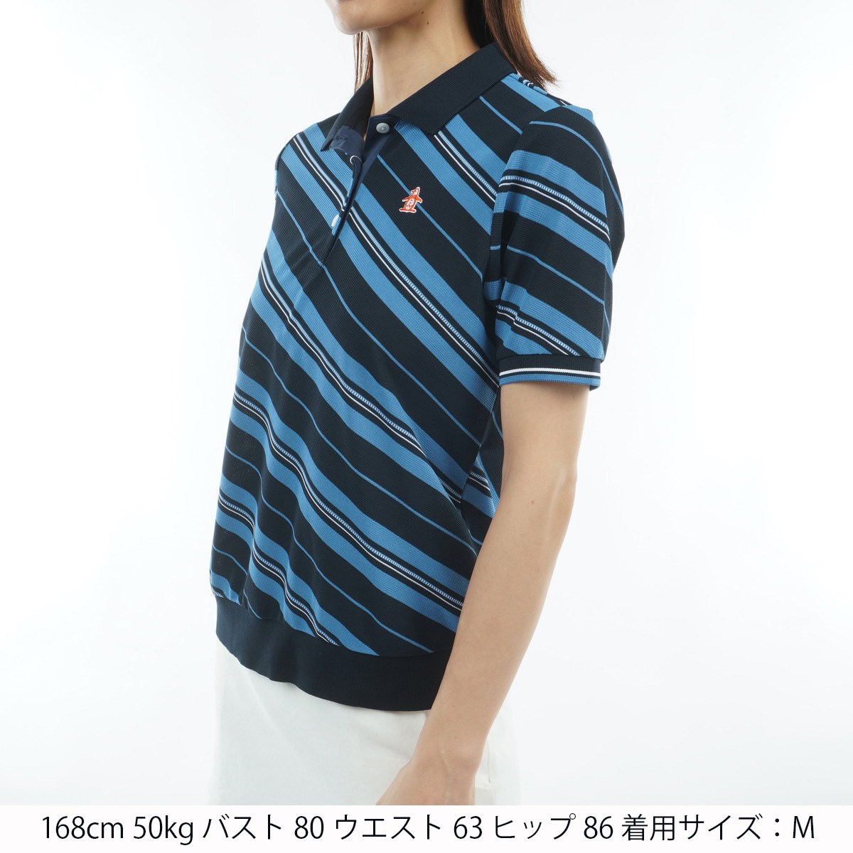マンシングウェア Munsingwear バイアスストライプ 裾リブ半袖ポロシャツ M ネイビー 00 レディス