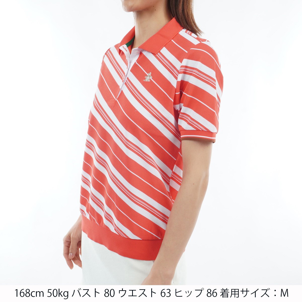 マンシングウェア Munsingwear バイアスストライプ 裾リブ半袖ポロシャツ LL オレンジ 00 レディス