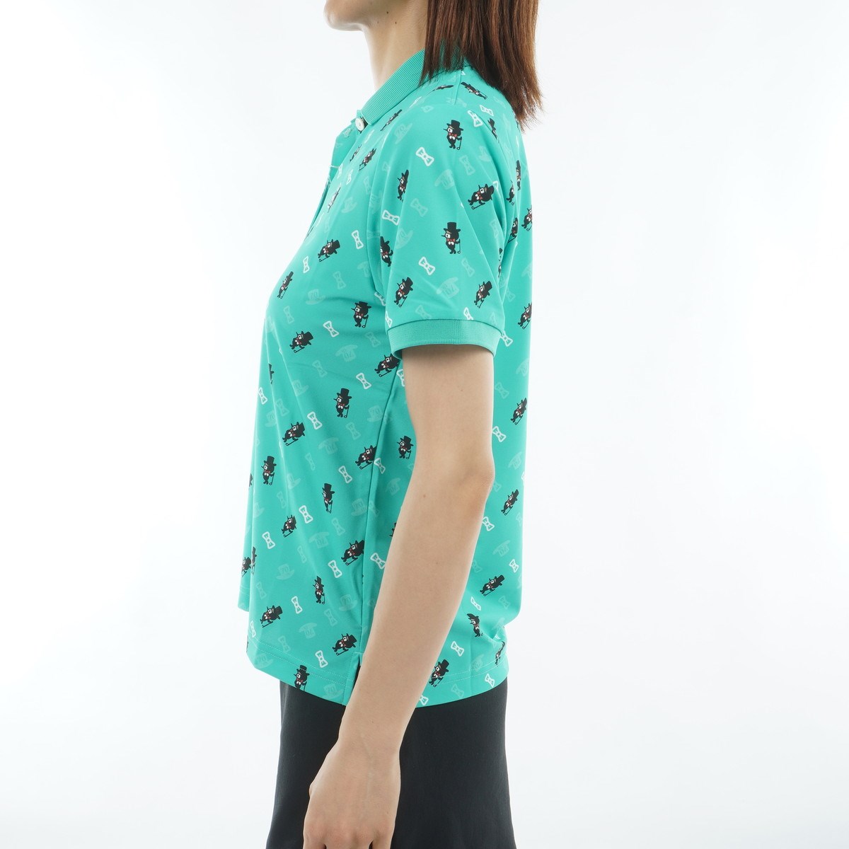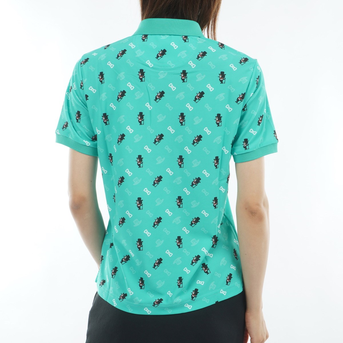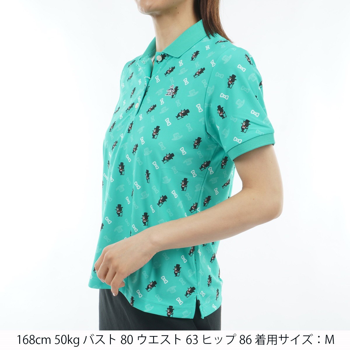 マンシングウェア Munsingwear Sunscreen NIR 70周年記念限定 総柄プリント ストレッチ半袖ポロシャツ L エメラルド 00 レディス