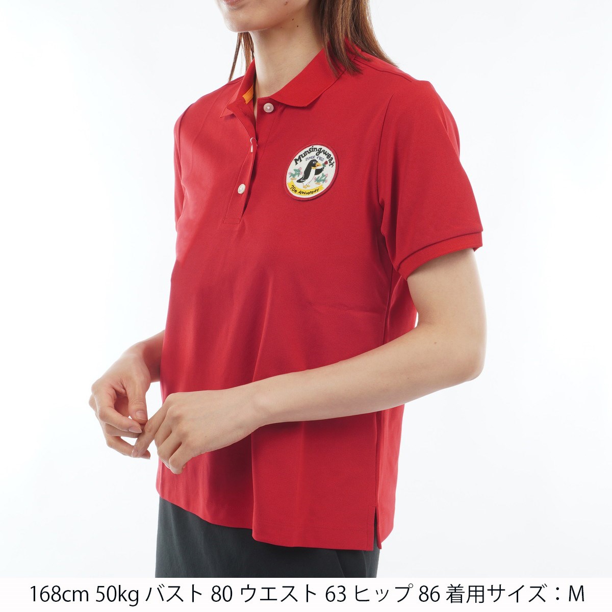 マンシングウェア Munsingwear Sunscreen NIR 70周年記念限定 ストレッチ ワッペン半袖ポロシャツ L レッド 00 レディス