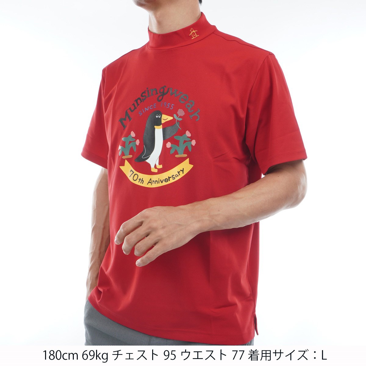 マンシングウェア Munsingwear Sunscreen NIR 70周年記念限定 ストレッチ プリントモックネック半袖シャツ 3L レッド 00