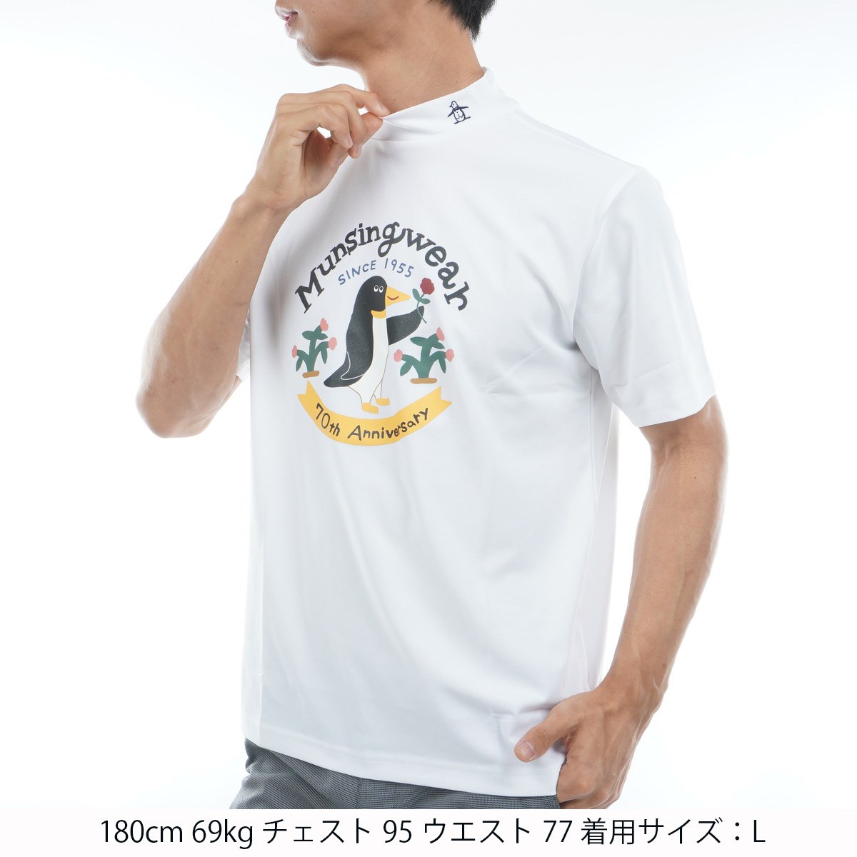 マンシングウェア Munsingwear Sunscreen NIR 70周年記念限定 ストレッチ プリントモックネック半袖シャツ M ホワイト 00