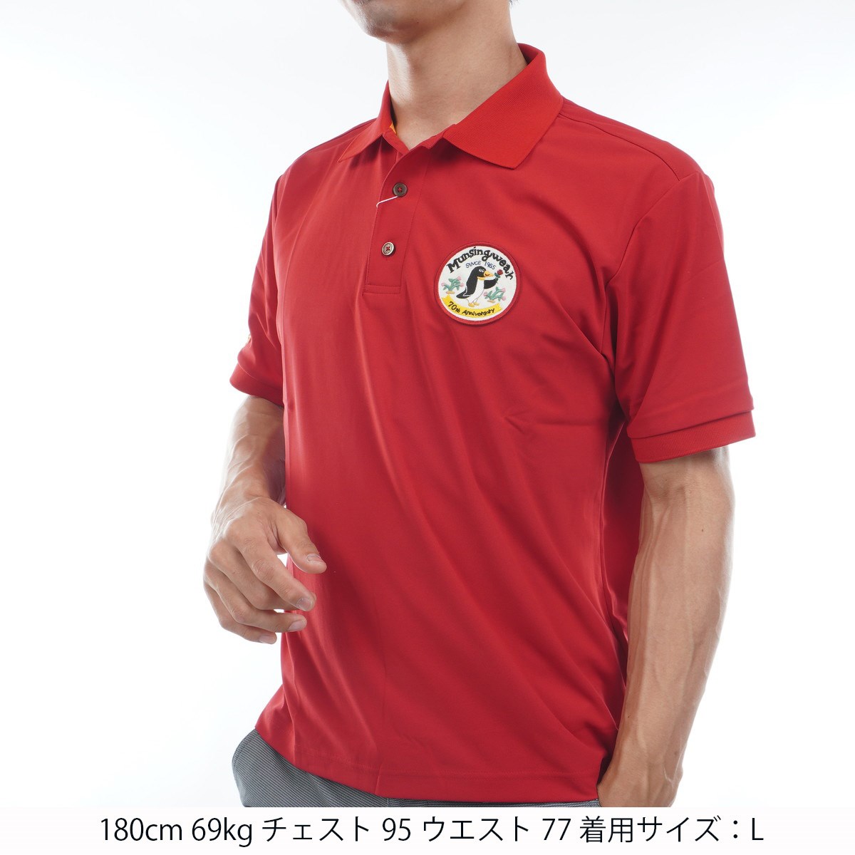 マンシングウェア Munsingwear Sunscreen NIR 70周年記念限定 ストレッチ ワッペン半袖ポロシャツ M レッド 00のレビュー