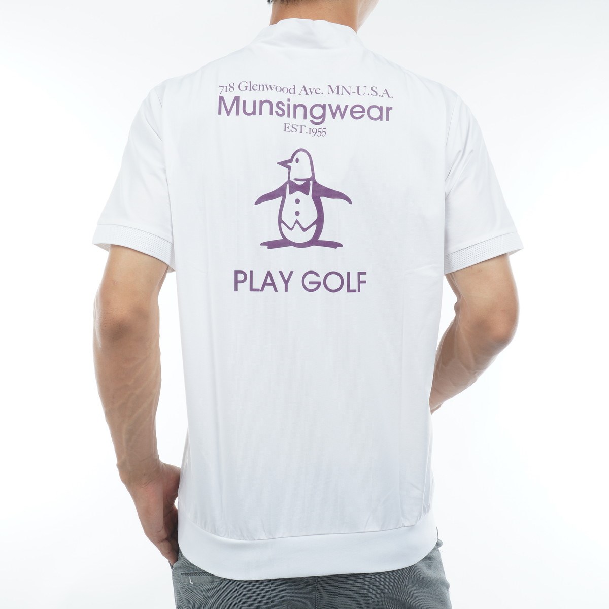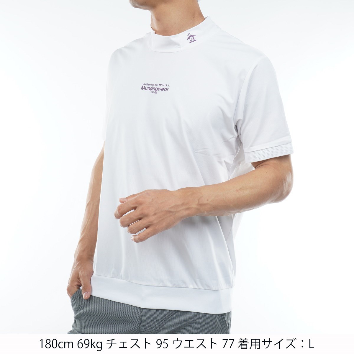 マンシングウェア Munsingwear ストレッチ ペンギングラフィックプリント モックネック半袖シャツ M ホワイト 00