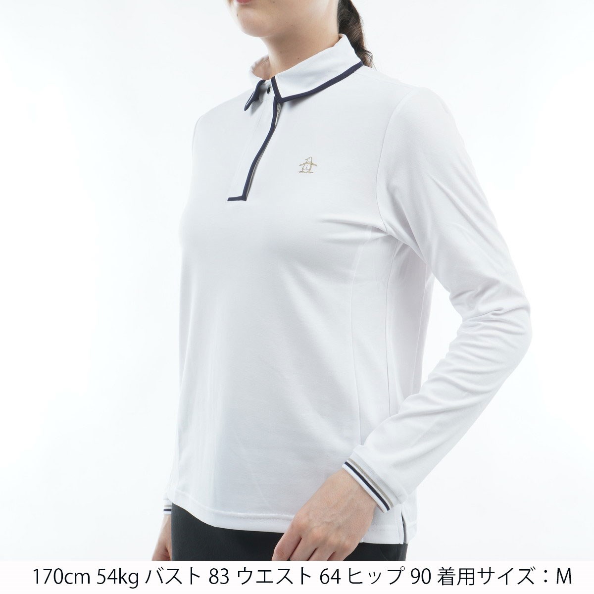 マンシングウェア Munsingwear Sunscreen NIR ストレッチ 4口ポンチパイピング長袖ポロシャツ 3L ホワイト 00 レディス