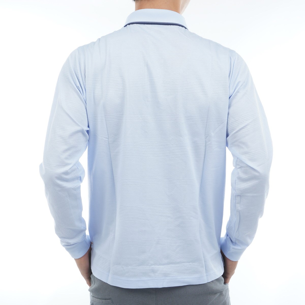 ---快適な着心地と機能性を両立した、グレンチェック柄ポケット付き長袖ポロシャツ---