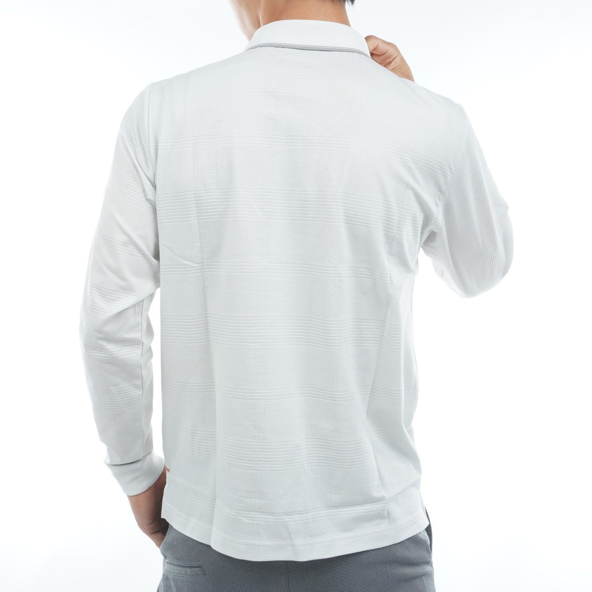 ---快適な着心地と機能性を両立した、グレンチェック柄ポケット付き長袖ポロシャツ---