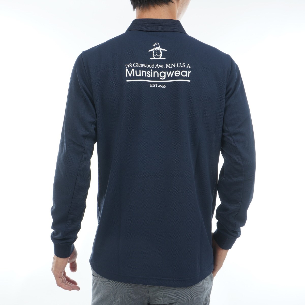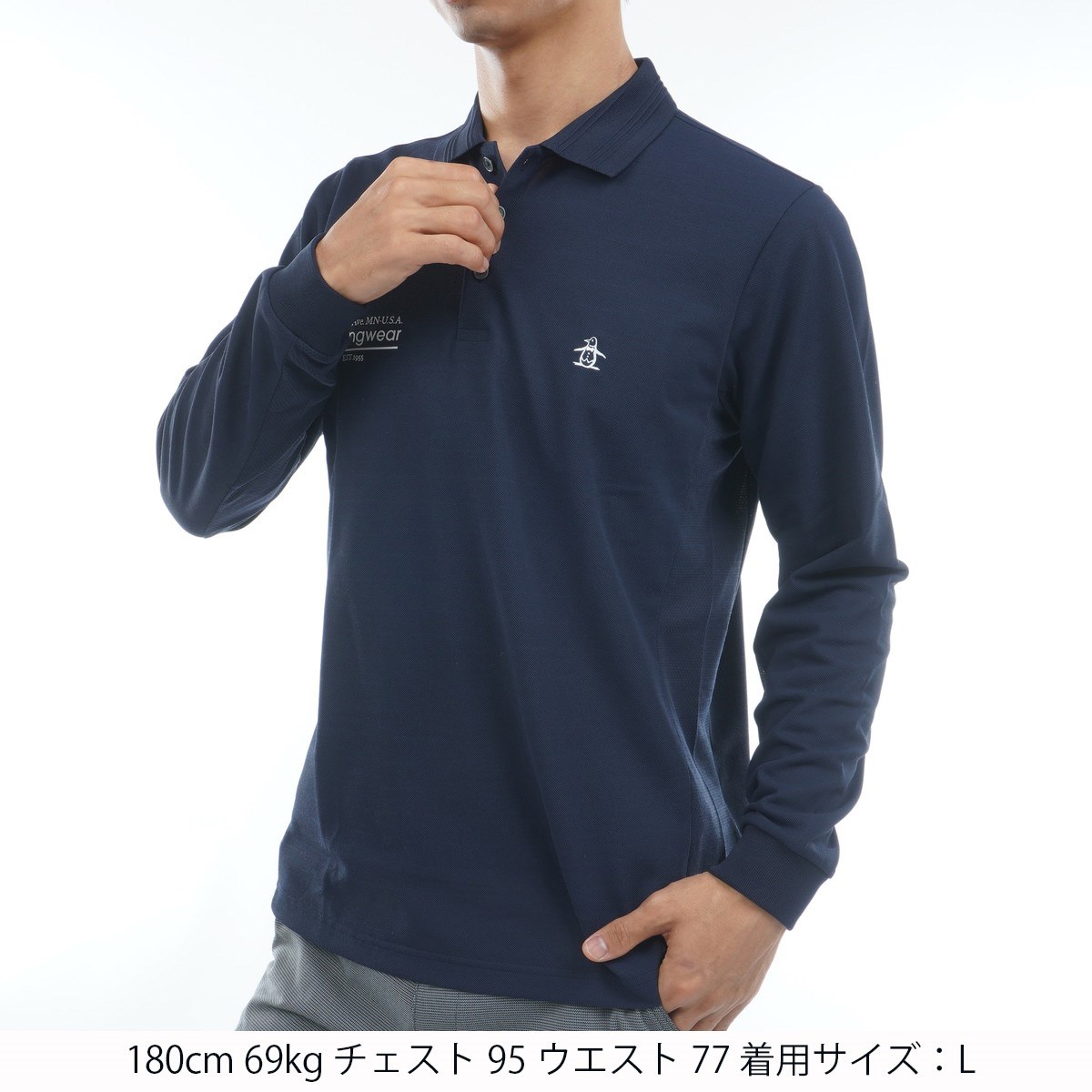 マンシングウェア Munsingwear ストレッチ フィラシス鹿の子 ペンギングラフィックプリント長袖ポロシャツ LL ネイビー 00