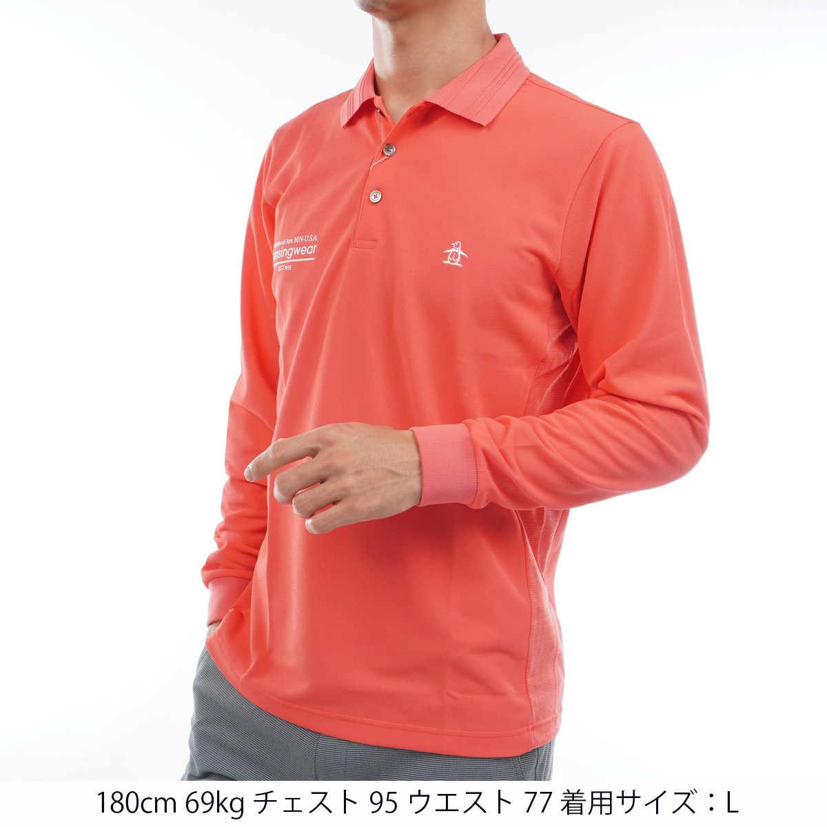 マンシングウェア Munsingwear ストレッチ フィラシス鹿の子 ペンギングラフィックプリント長袖ポロシャツ L オレンジ 00