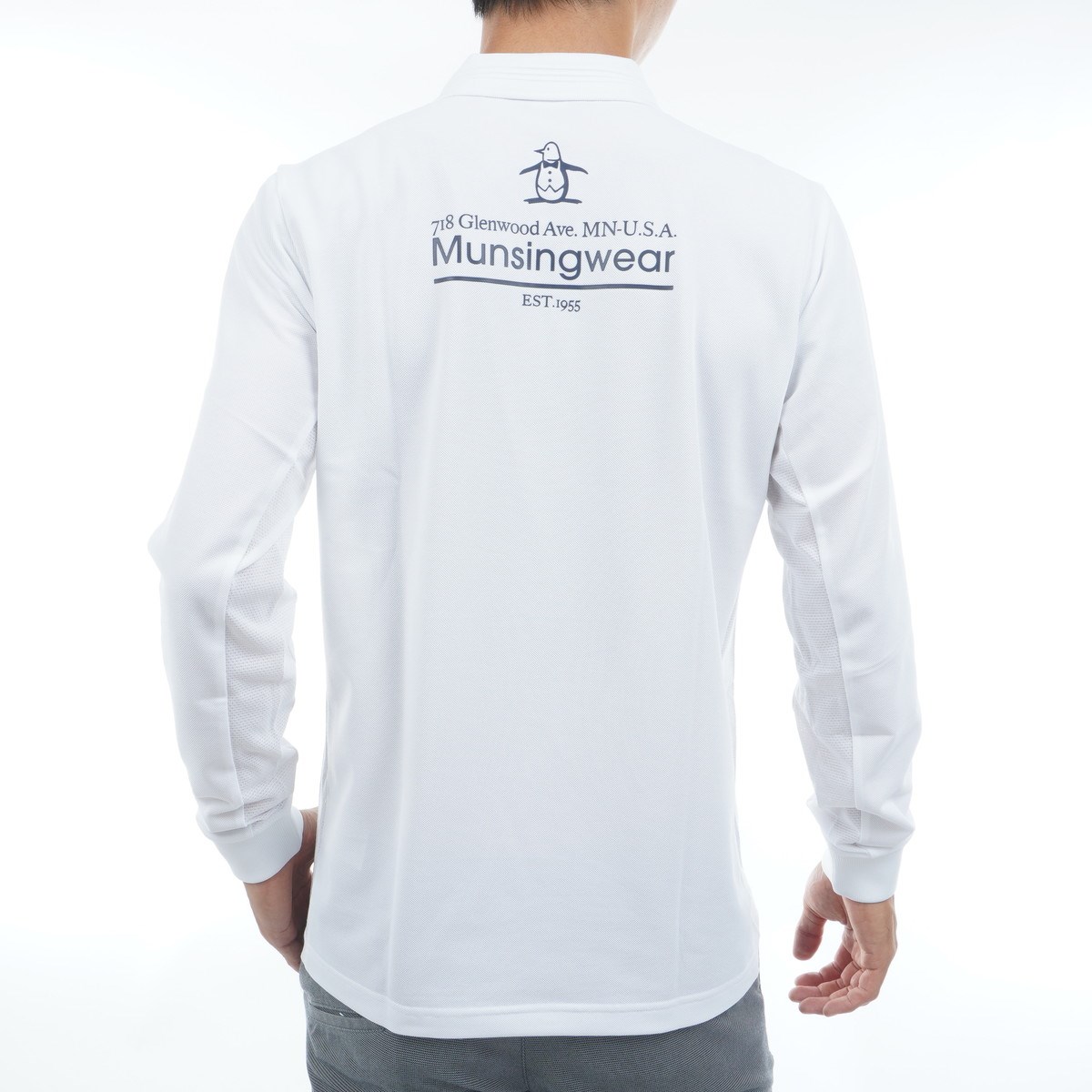マンシングウェア Munsingwear ストレッチ フィラシス鹿の子 ペンギングラフィックプリント長袖ポロシャツ 3L ホワイト 00