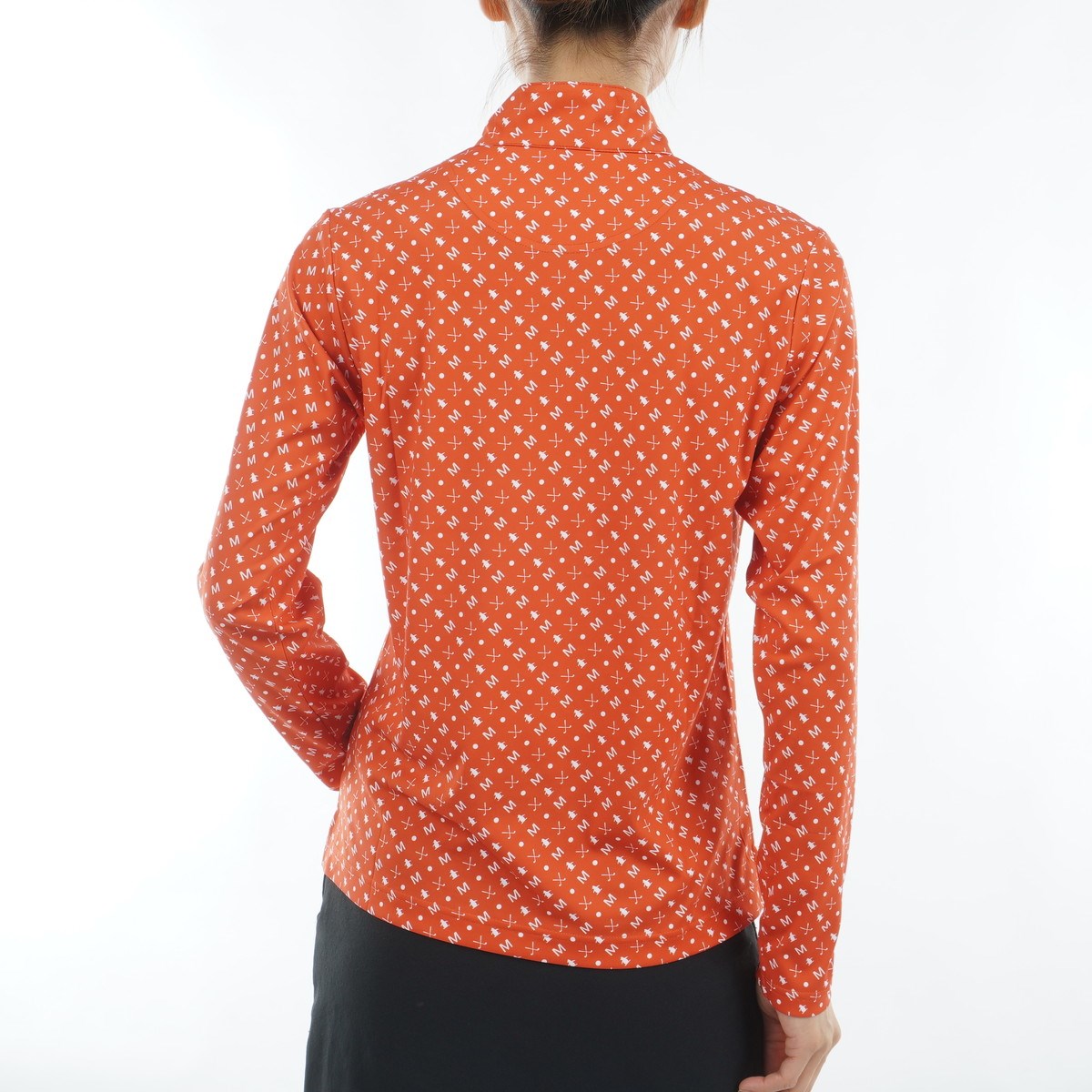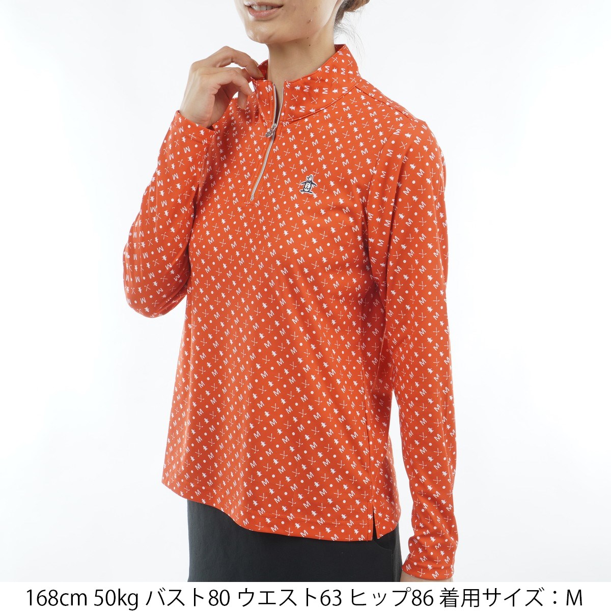 マンシングウェア Munsingwear Sunscreen NIR ストレッチ プリントハーフジップ長袖シャツ M オレンジ 00 レディス