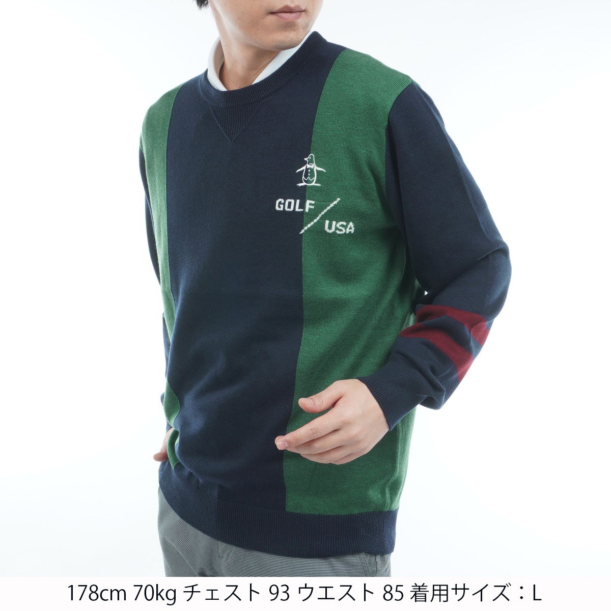 マンシングウェア Munsingwear ロゴインターシャクルーネックセーター M ネイビー 00