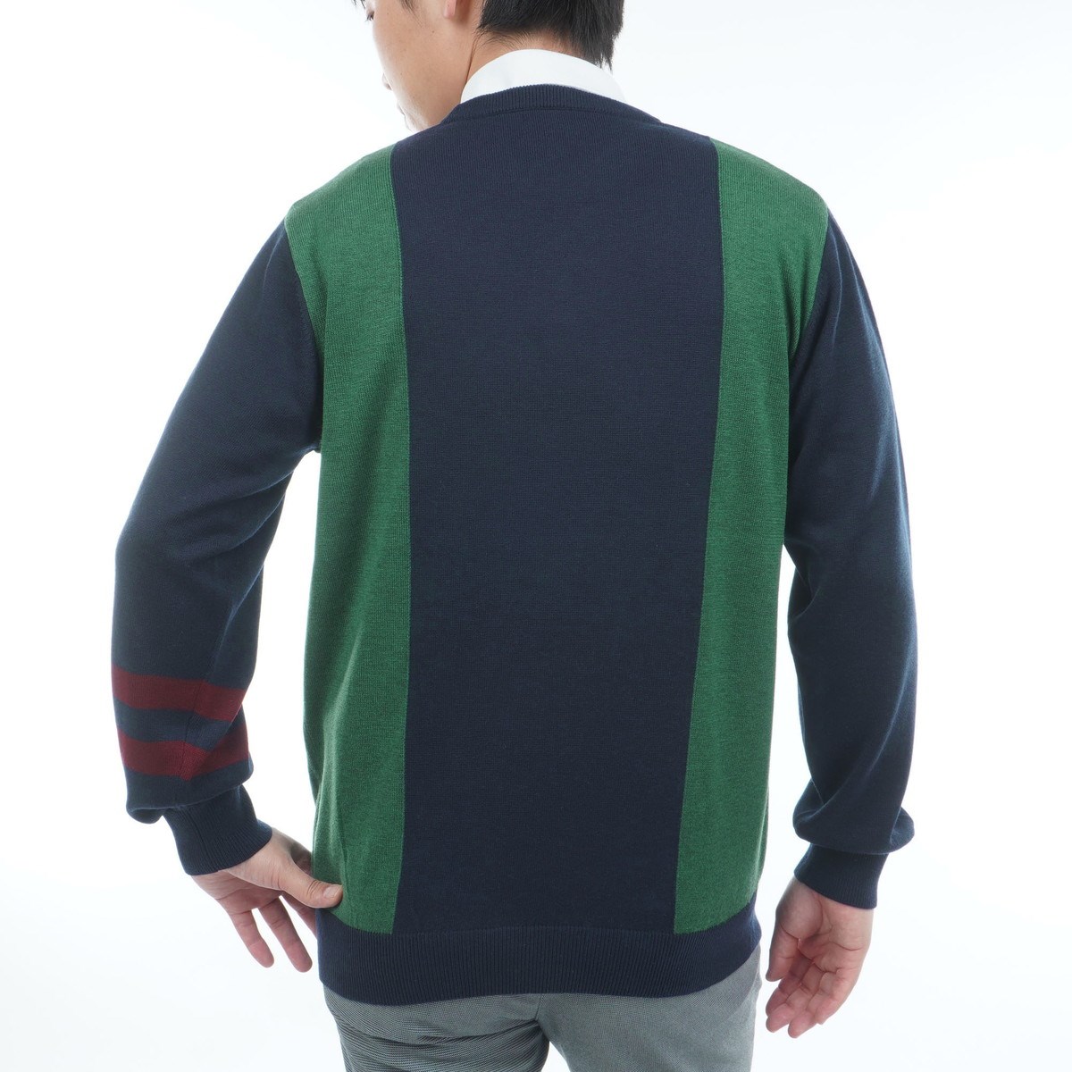 ---スポーティな配色とロゴがアクセントのクルーネックセーター---