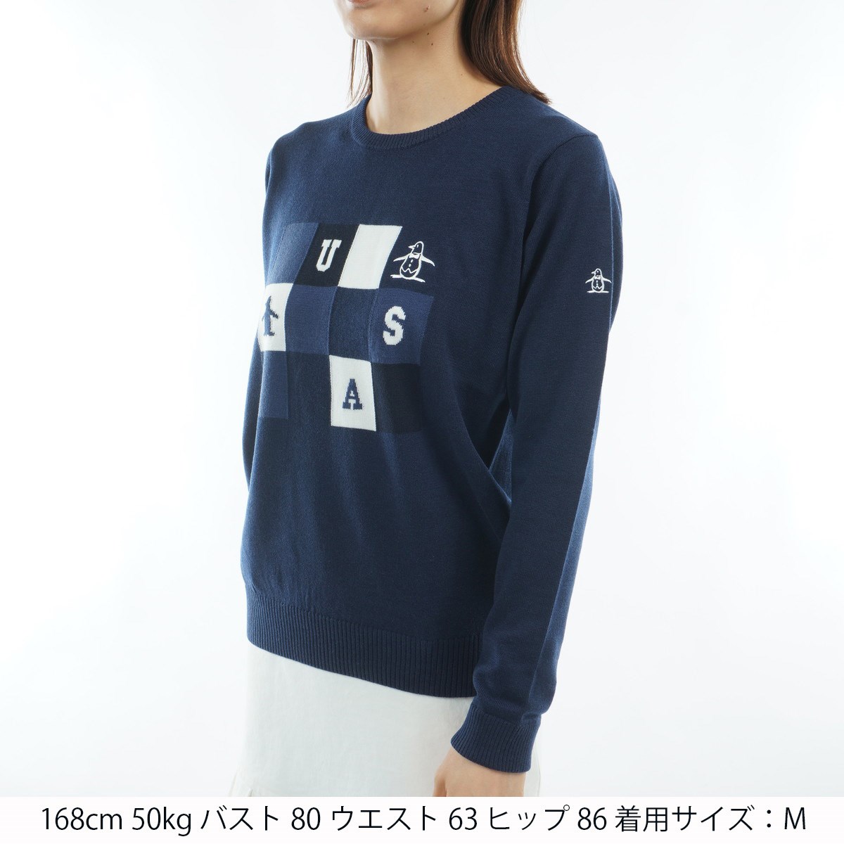 マンシングウェア Munsingwear ブロッキングジャカードクルーネックセーター L ネイビー 00 レディス