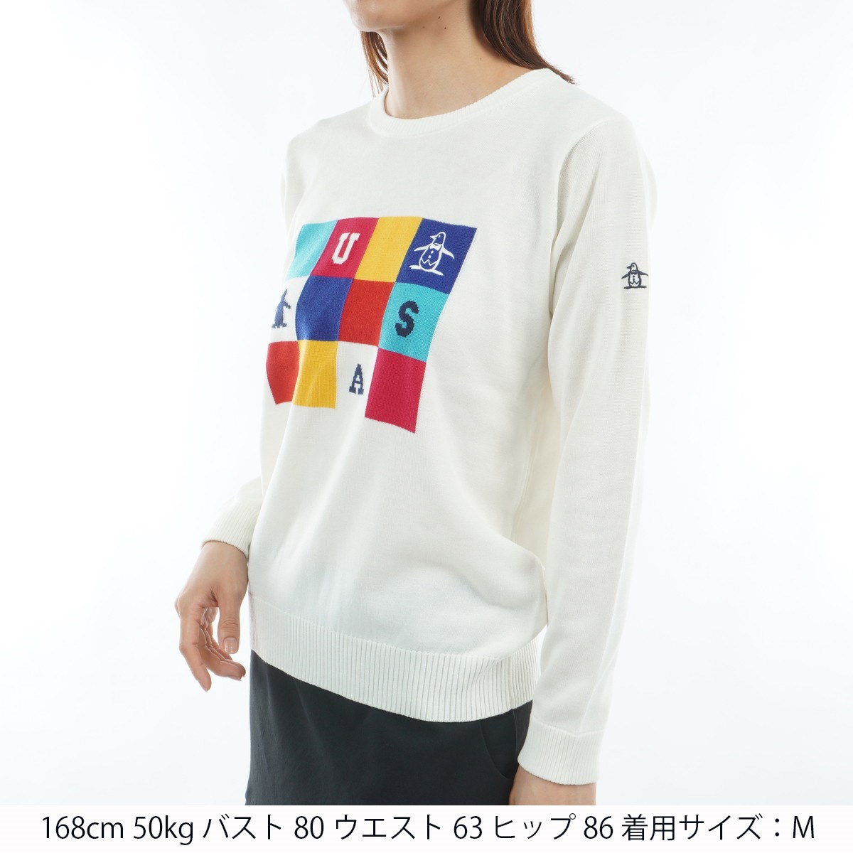 マンシングウェア Munsingwear ブロッキングジャカードクルーネックセーター LL ホワイト 00 レディス