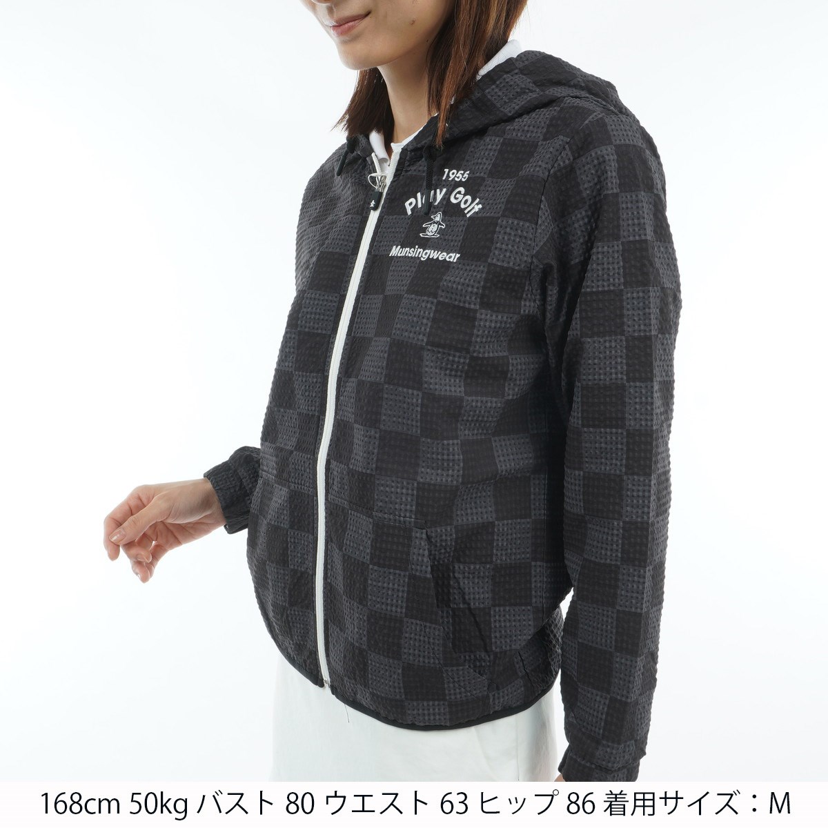 マンシングウェア Munsingwear ストレッチ ブロック柄長袖前開きフーディー L ブラック 00 レディス