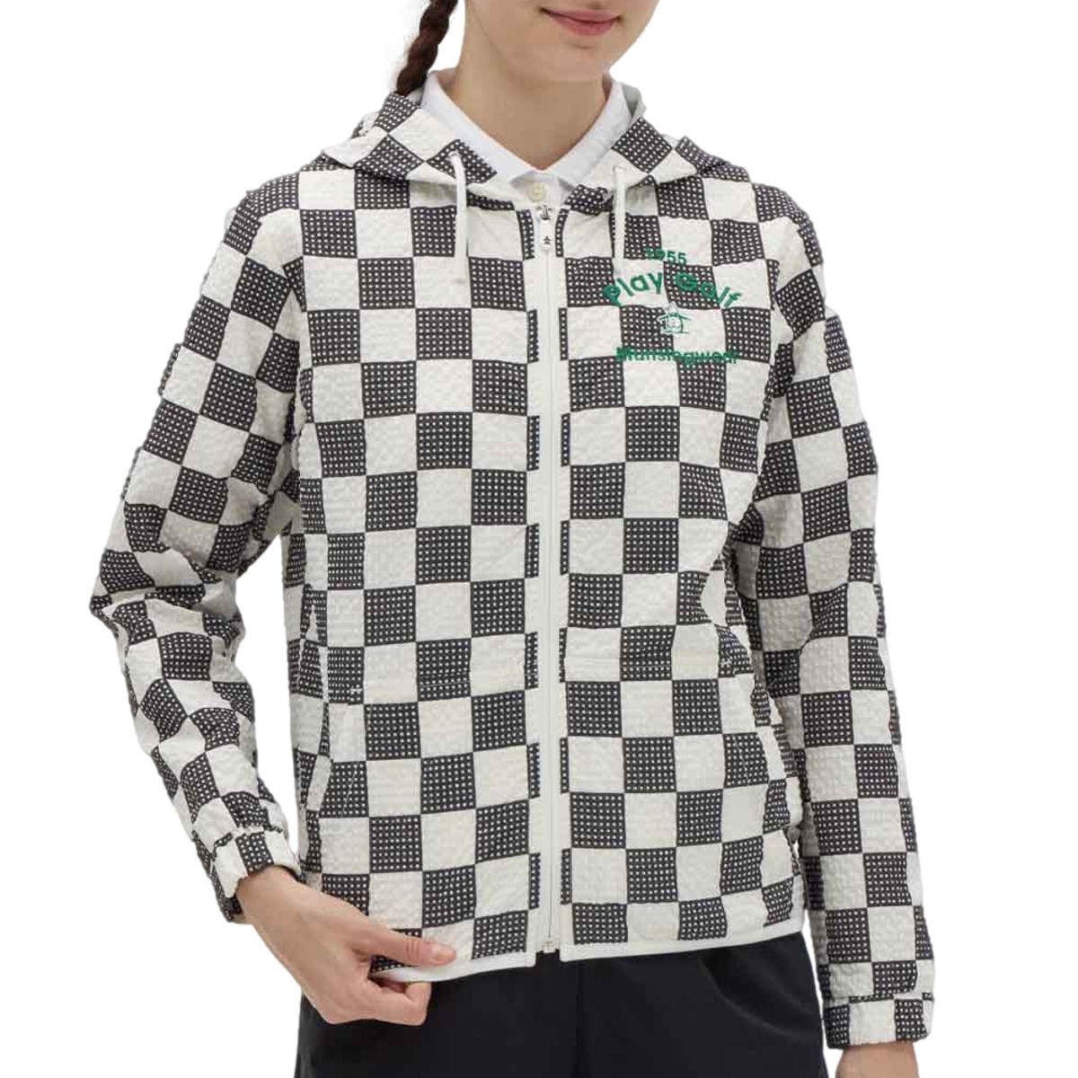 ---夏のゴルフに最適!ブロックチェック柄の長袖前開きフーディー---