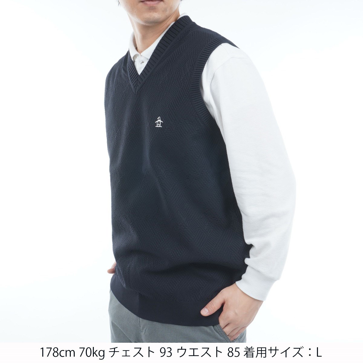 マンシングウェア Munsingwear 地柄Vネックニットベスト LL ネイビー 00