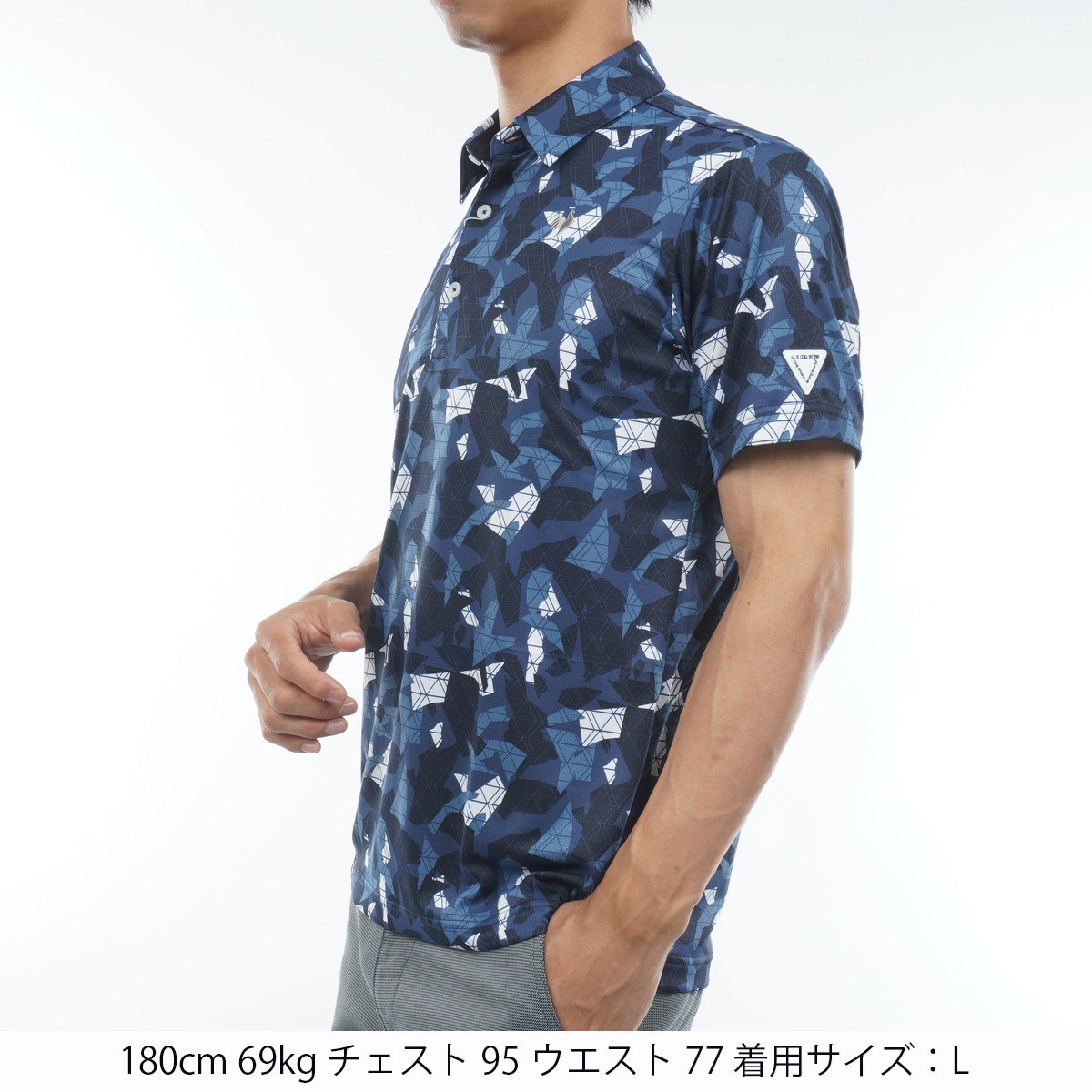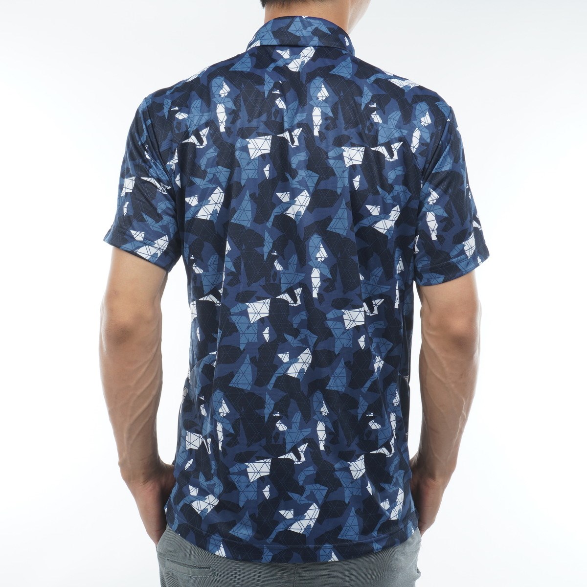 シーズンテーマを表現した総柄プリントが目を引くデザイン半袖ポロシャツ。