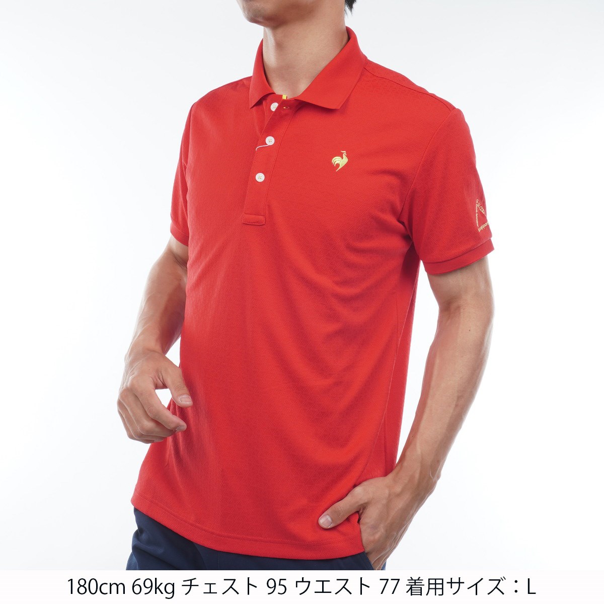 ルコックスポルティフ ゴルフ Le coq sportif GOLF ストレッチ トライアングルジャカード半袖ポロシャツ L レッド 00