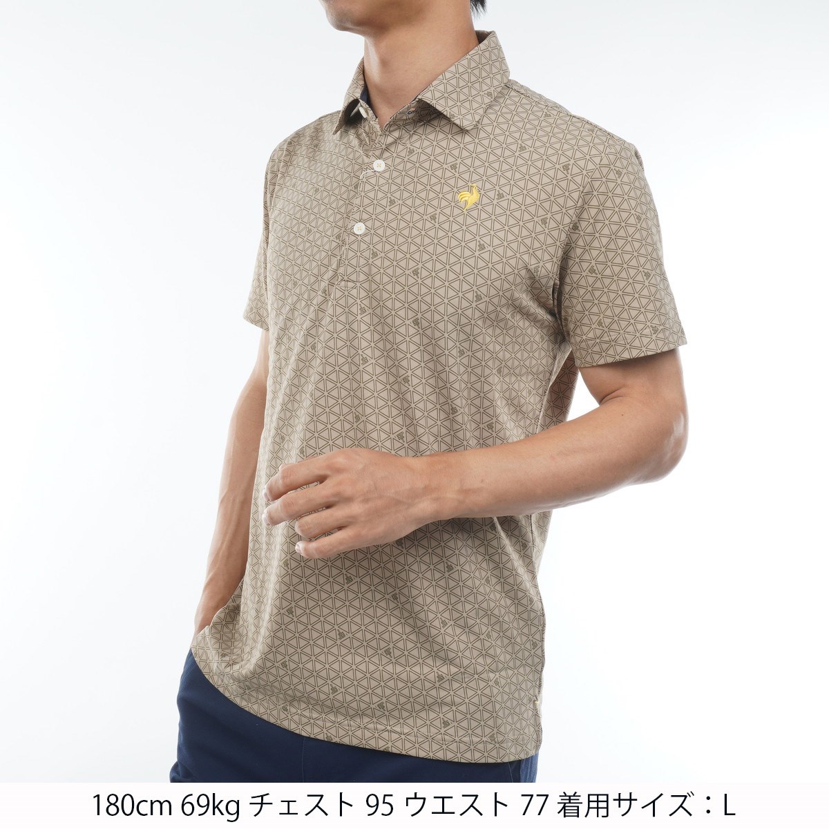 ルコックスポルティフ ゴルフ Le coq sportif GOLF ストレッチ トライアングルプリント半袖ポロシャツ M ベージュ 00