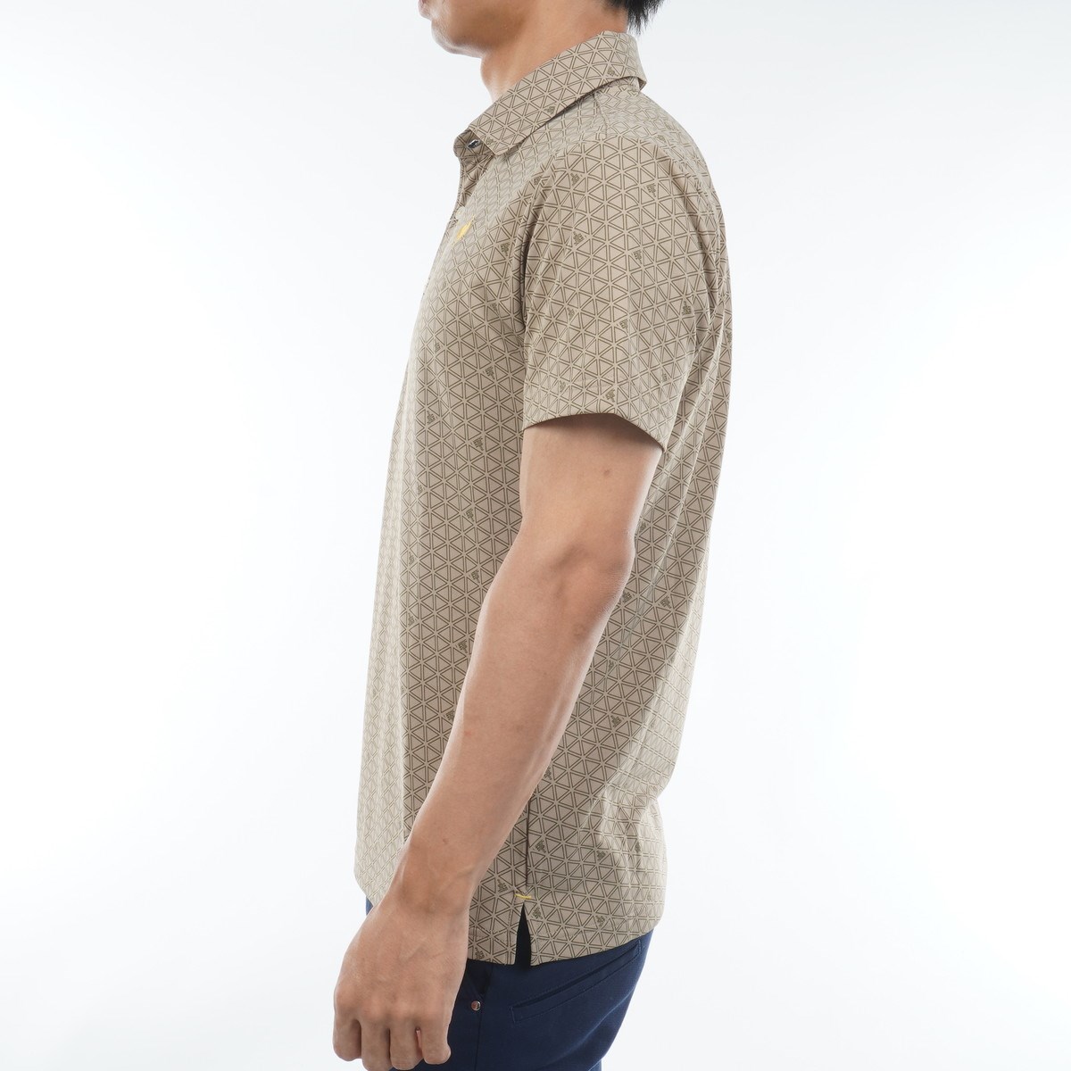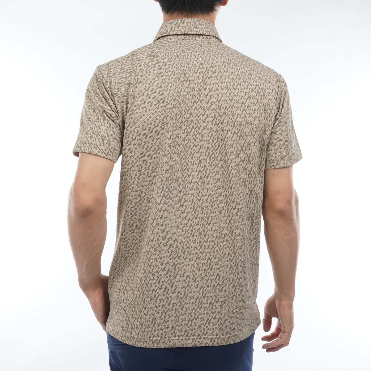 スポーティさと上品さを併せ持ったトライアングル柄プリントの半袖ポロシャツ。