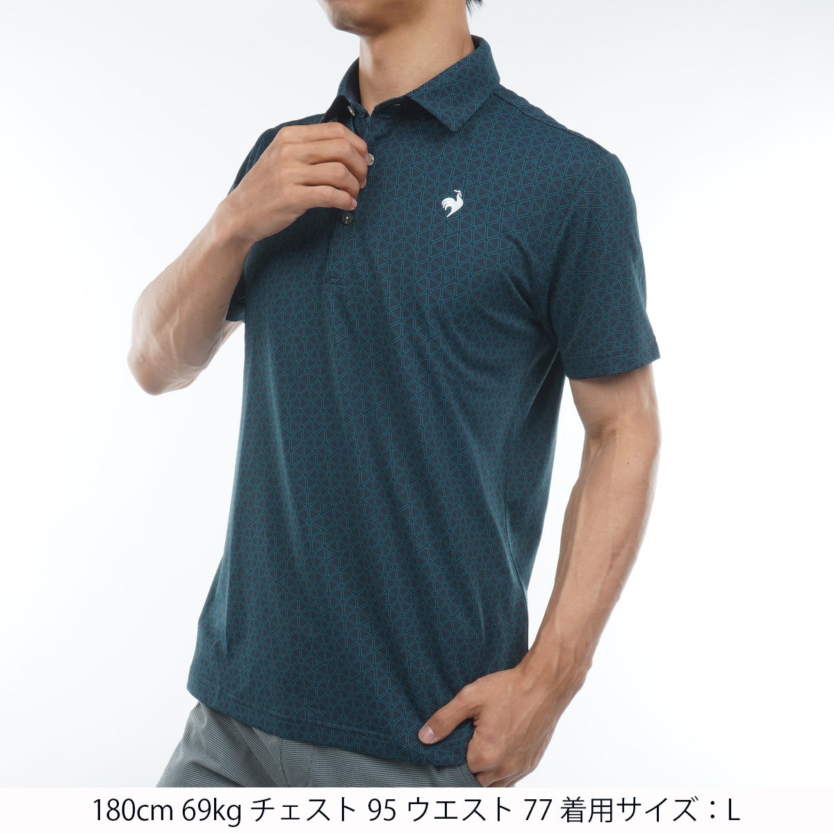 ルコックスポルティフ ゴルフ Le coq sportif GOLF ストレッチ トライアングルプリント半袖ポロシャツ M ネイビー 00