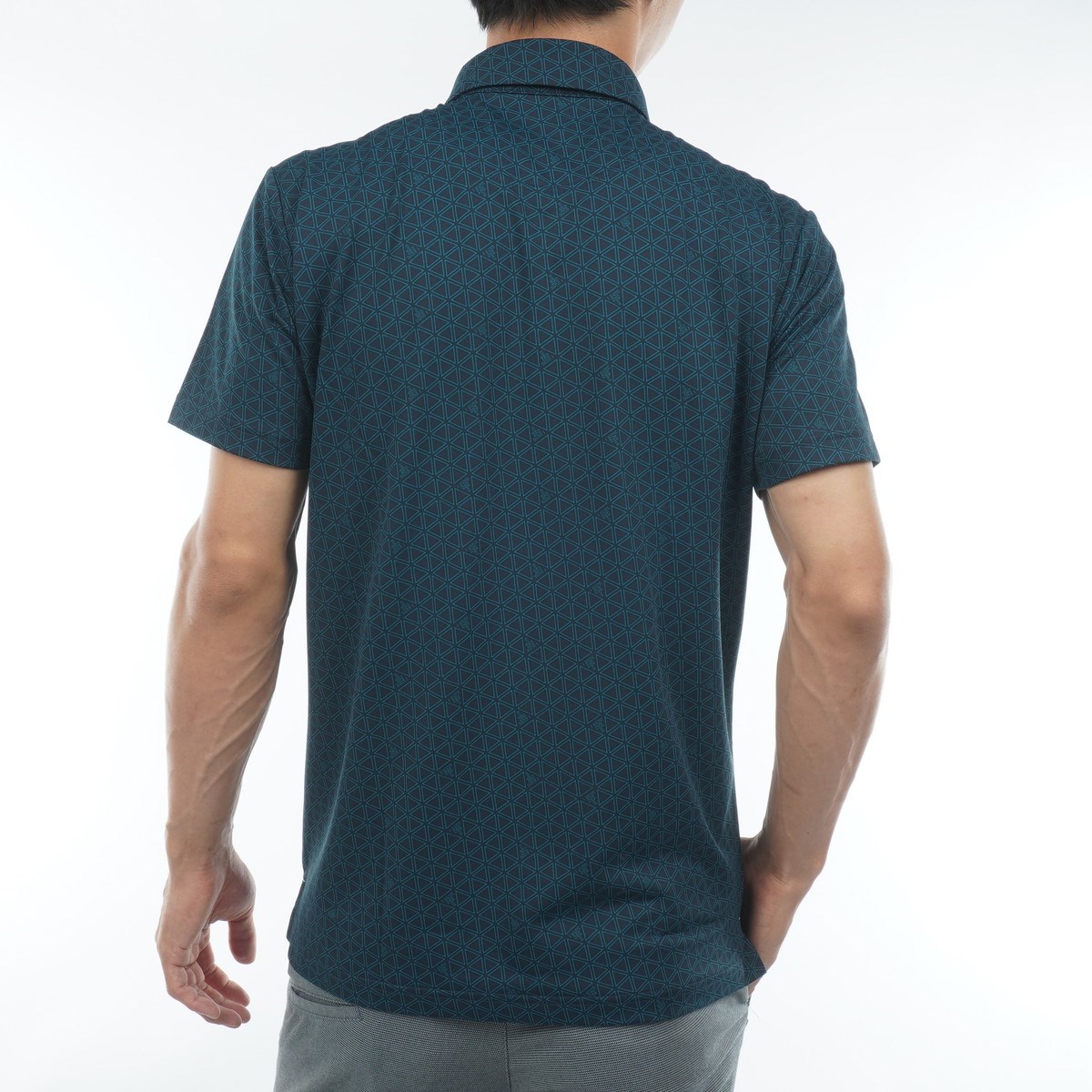 スポーティさと上品さを併せ持ったトライアングル柄プリントの半袖ポロシャツ。