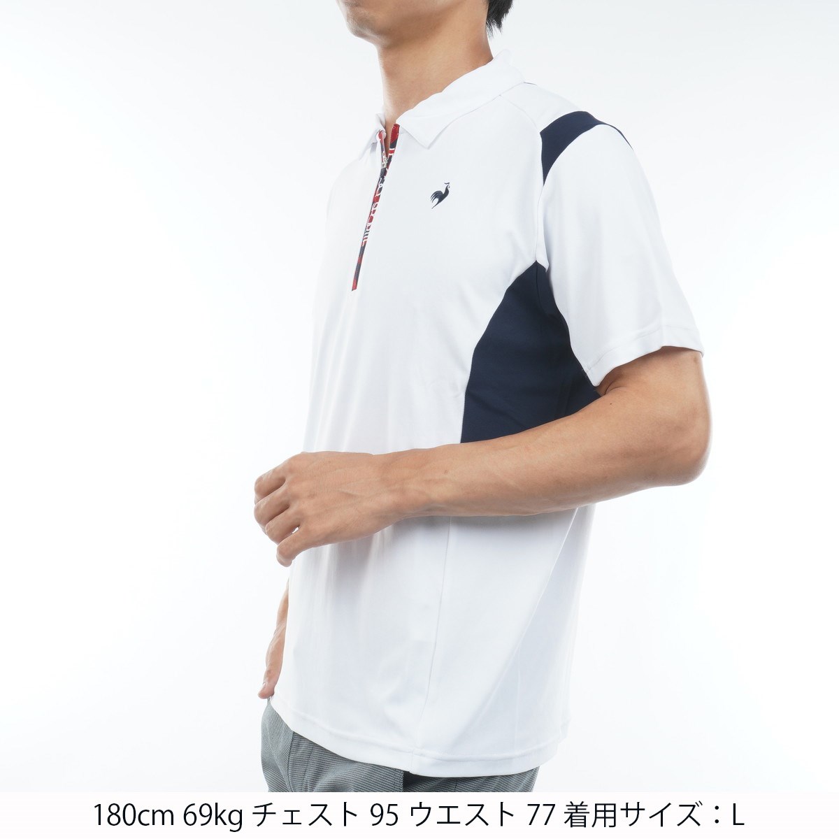 ルコックスポルティフ ゴルフ Le coq sportif GOLF ストレッチ ハーフジップ半袖ポロシャツ M ホワイト 00