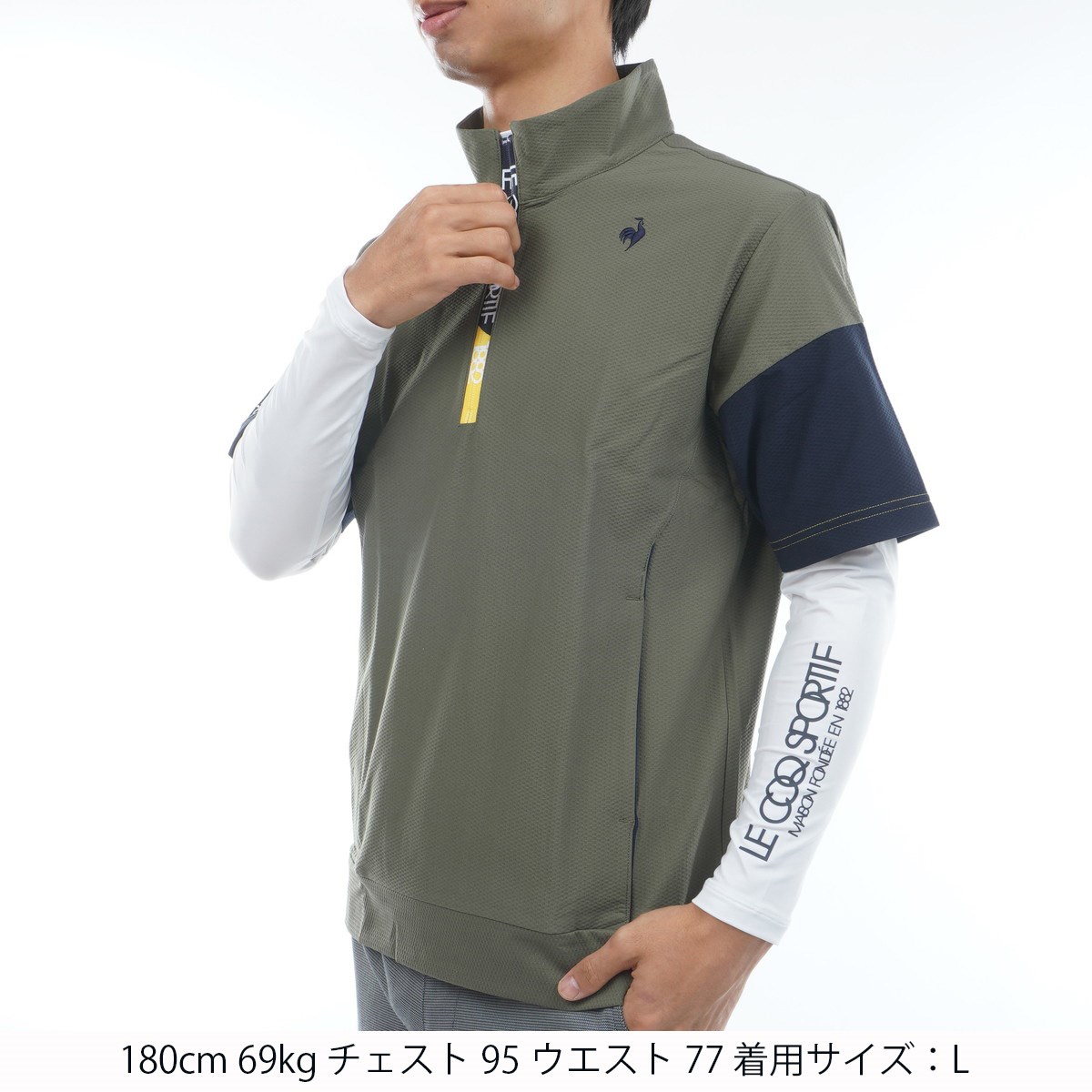 ルコックスポルティフ ゴルフ Le coq sportif GOLF ストレッチ 長袖インナーシャツ付き半袖ミドラー 3L カーキ 00