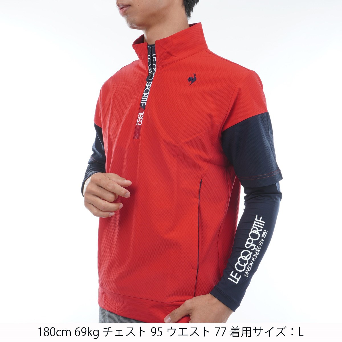 ルコックスポルティフ ゴルフ Le coq sportif GOLF ストレッチ 長袖インナーシャツ付き半袖ミドラー LL レッド 00