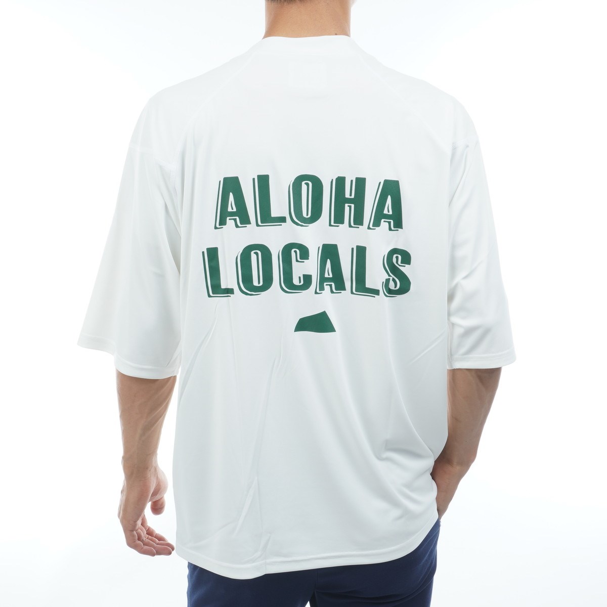 フロント左胸にダイアモンドヘッドロゴが入り、バックにはALOHA LOCALSのプリントがインパクトある仕上がり。