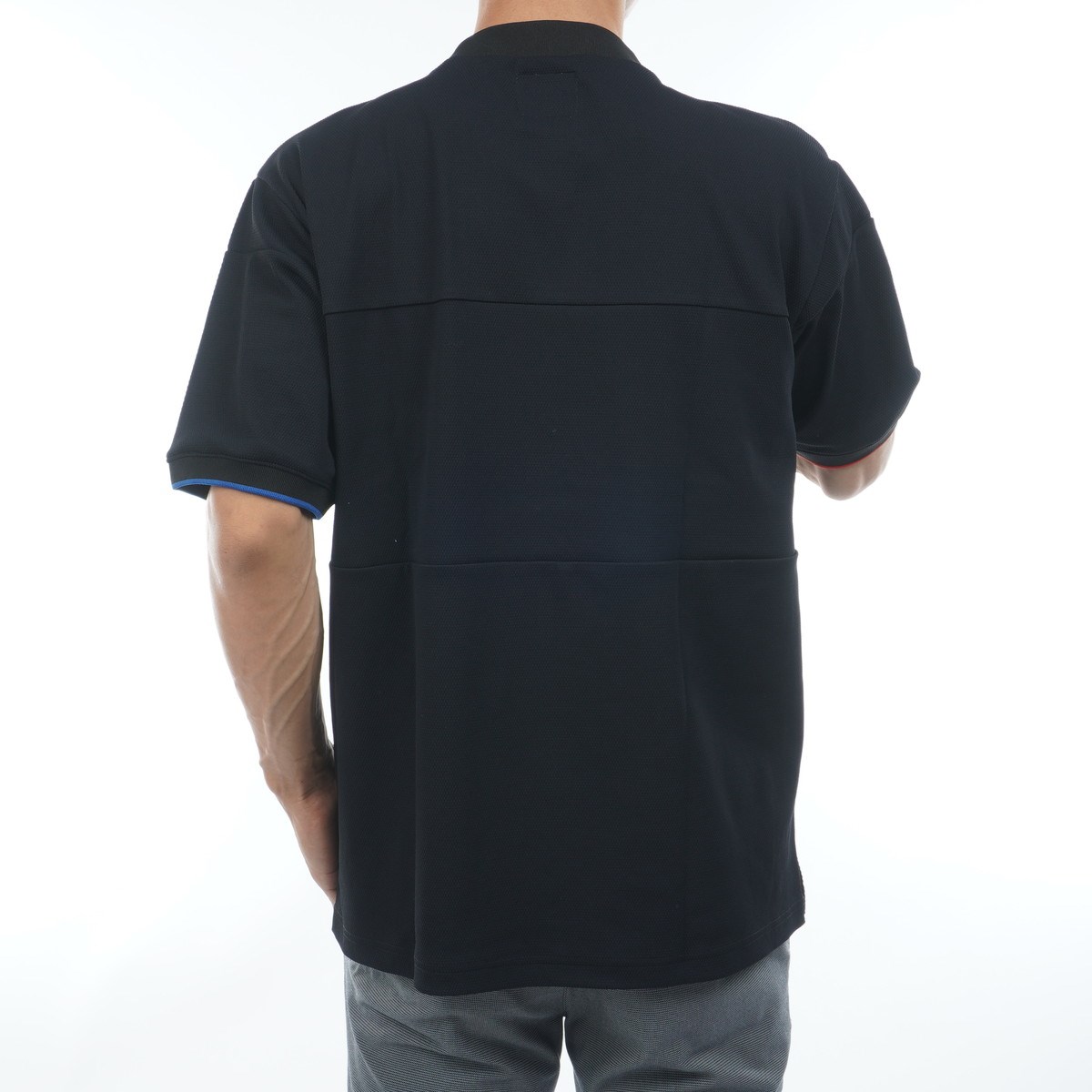襟と袖口はピンストライプが入りのリブ仕様。