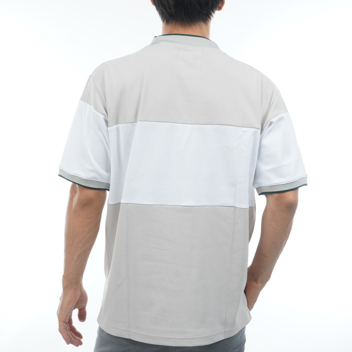 特殊な糸を使って編まれたポップコーンニット素材のモックネック半袖シャツ。