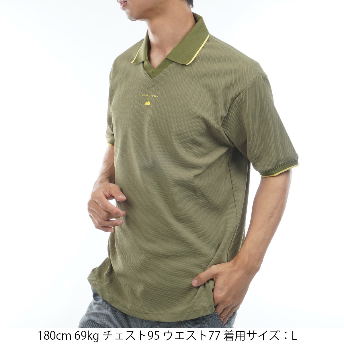 サルベージ パブリック コレパ SALVAGE PUBLIC Kolepa ストレッチ クリナポハポハ Vネック半袖シャツ L オリーブ