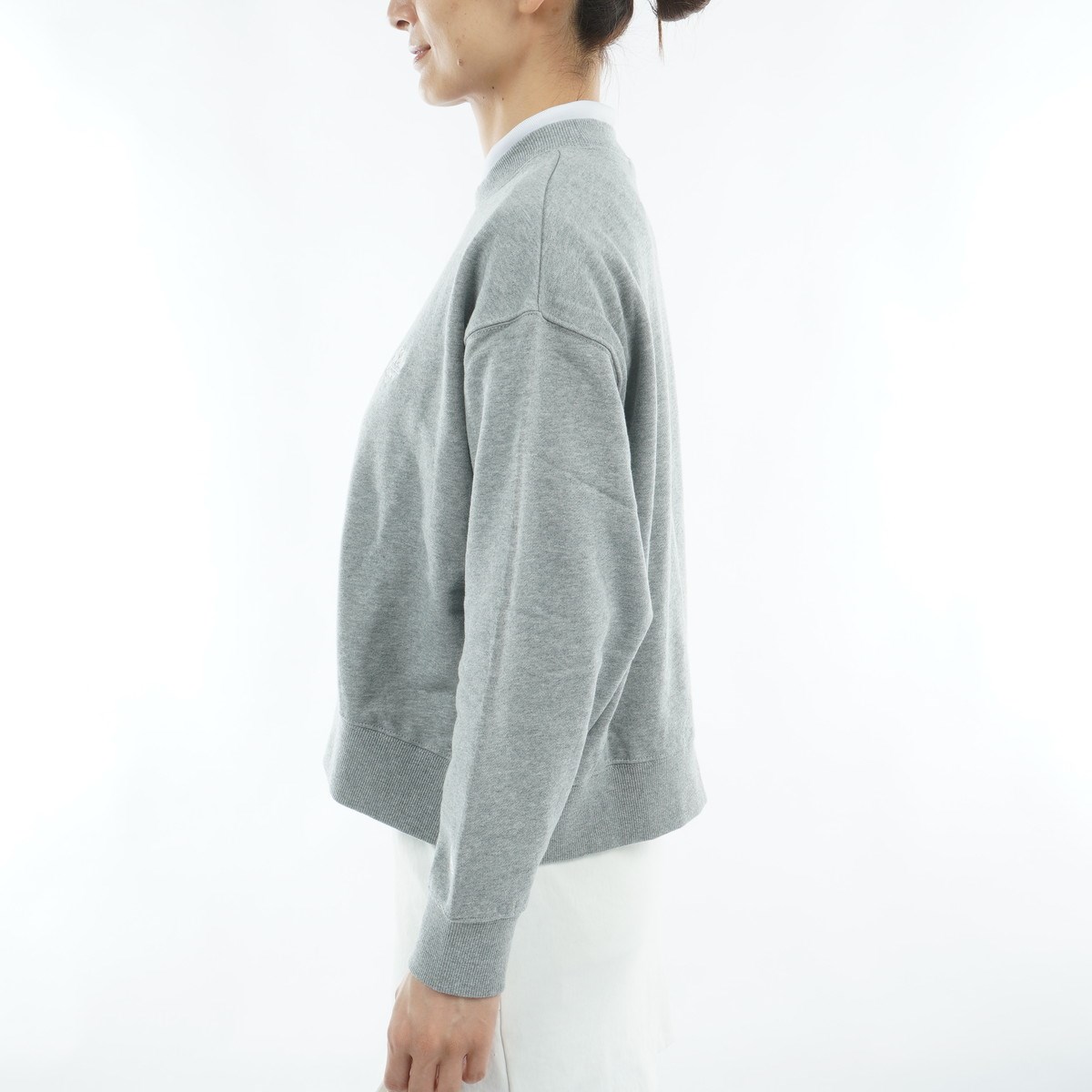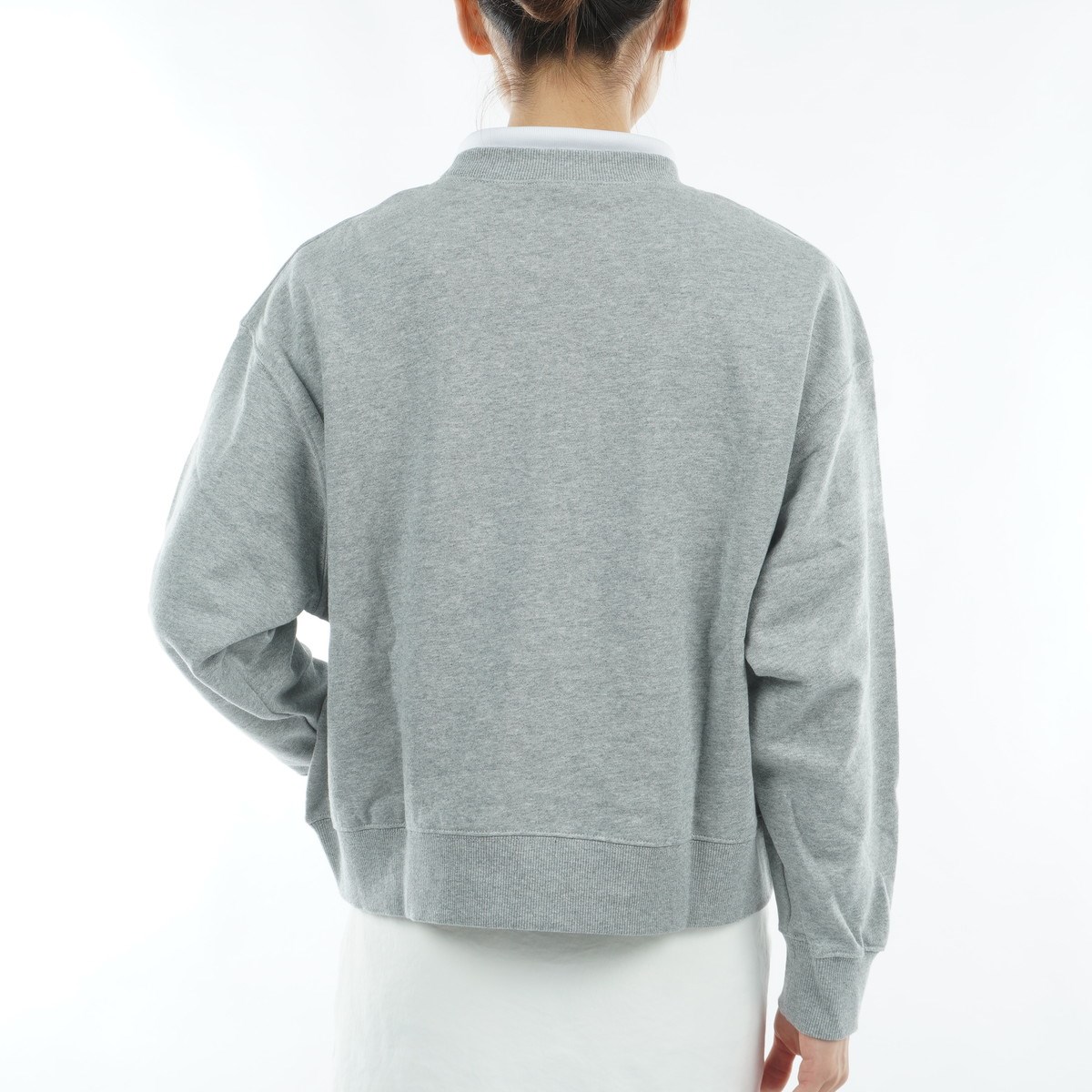 着回しやすい丈感の、ベーシックなサイズ感のクルーネックスウェット。