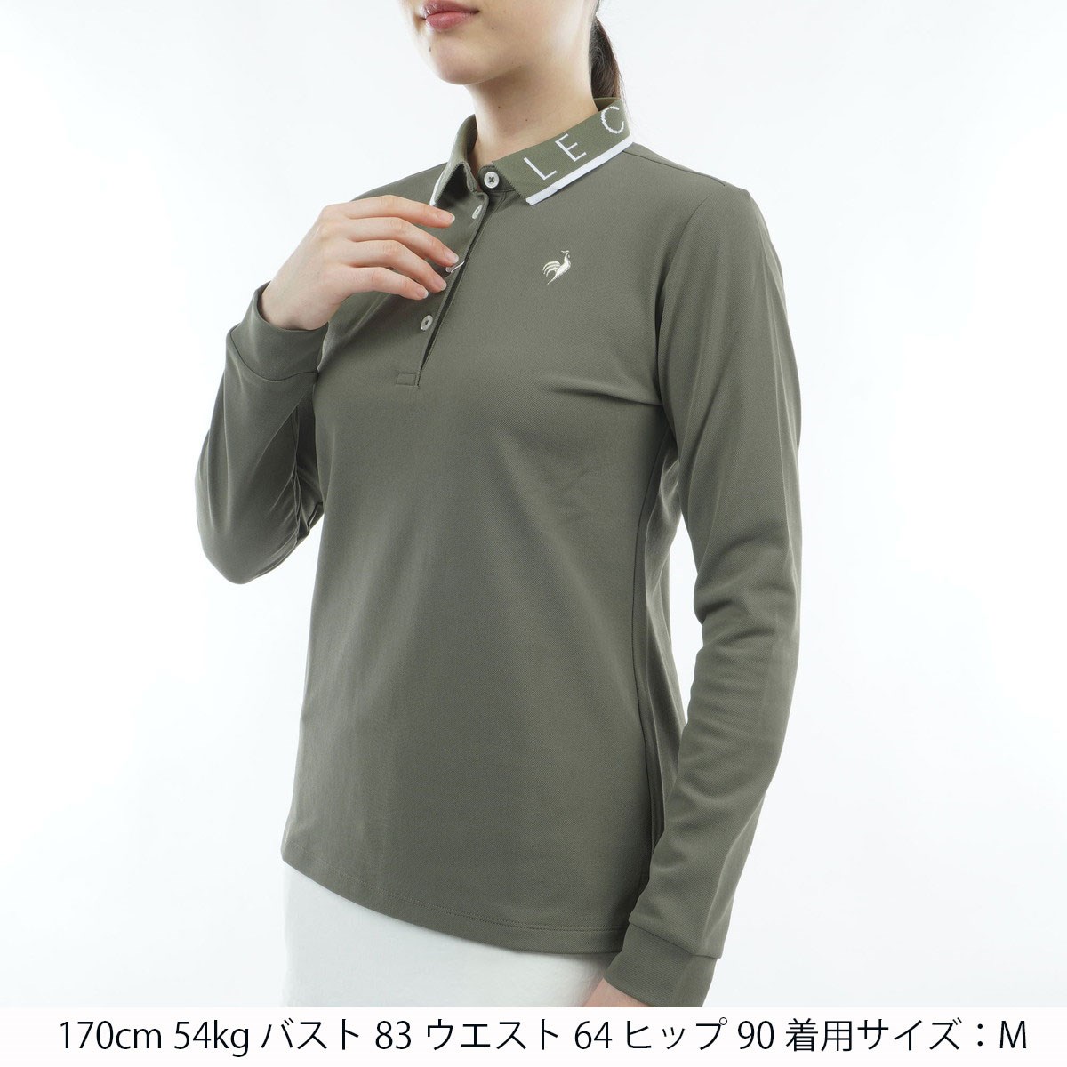 ルコックスポルティフ ゴルフ Le coq sportif GOLF ストレッチ ロゴ襟長袖ポロシャツ M カーキ 00 レディス