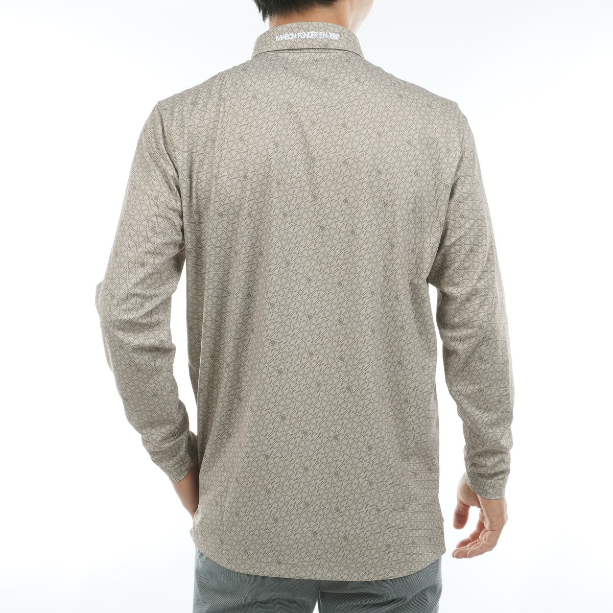 幾何学模様がスタイリッシュなボタンダウン長袖ポロシャツ。