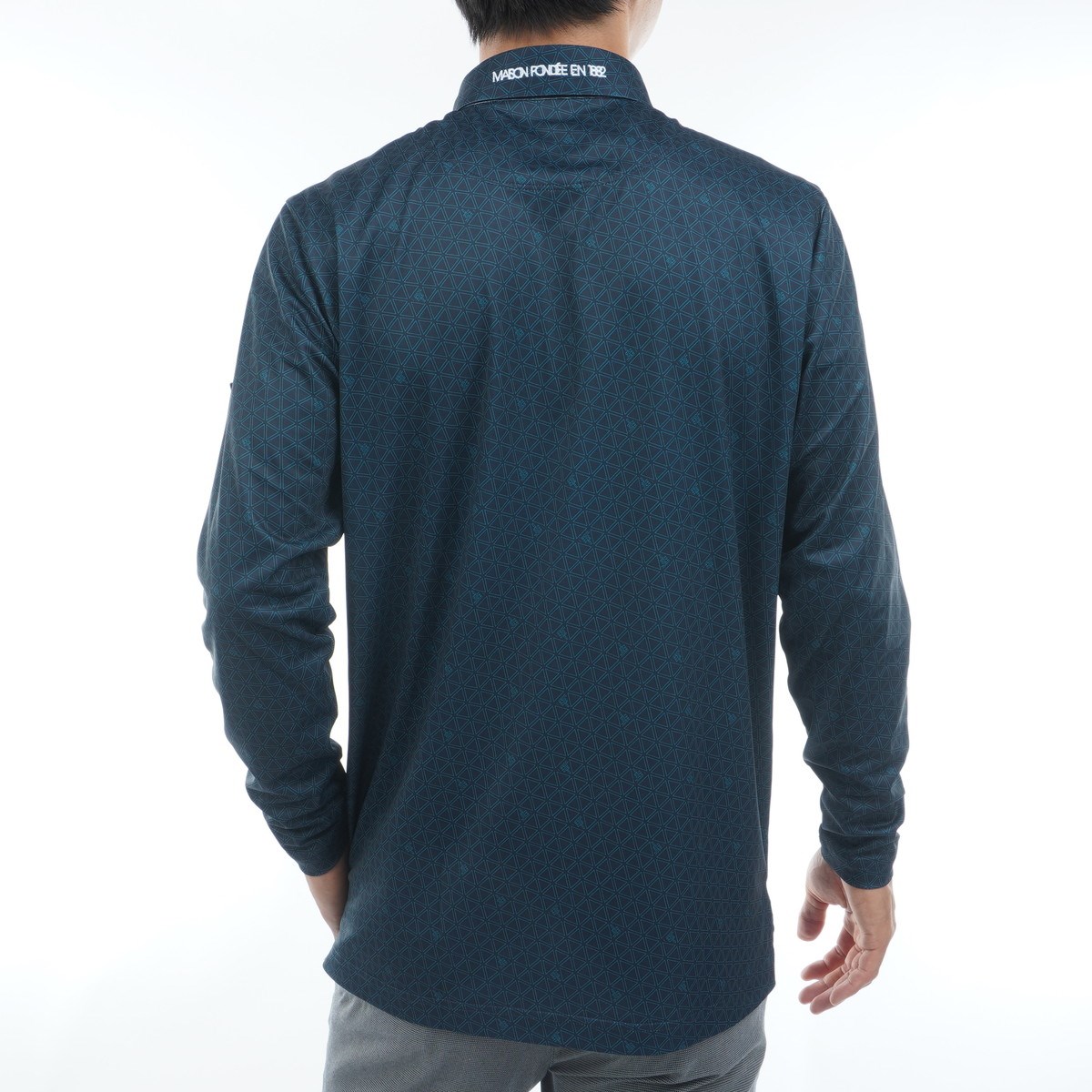 幾何学模様がスタイリッシュなボタンダウン長袖ポロシャツ。